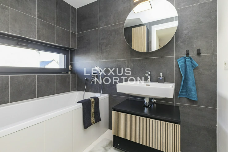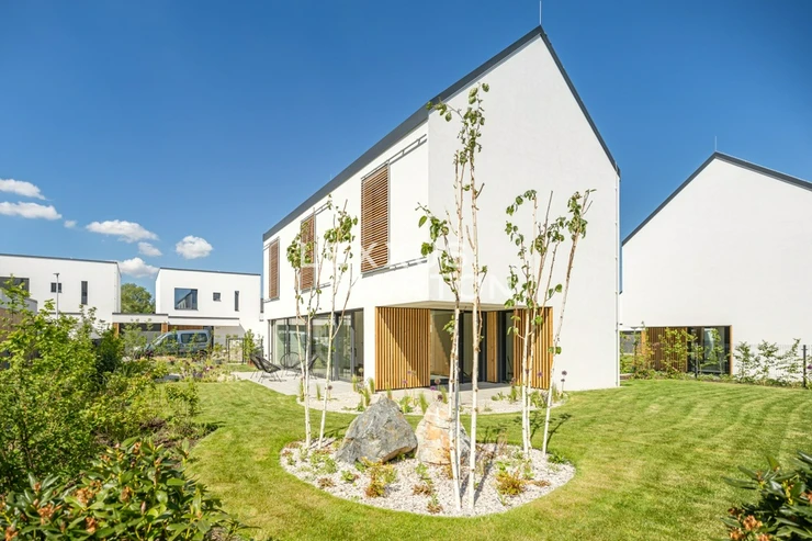 We offer for sale a family two-story four-bedroom house with a total area of 151,8 sqm, a garage (23.5 sqm), a terrace (23.58 sqm) and a garden (319 sqm), which is part of the Ctenicky haj project. This project combines comfortable and energy-efficient living with the harmony of nature and a favorable location on the northeastern edge of Prague, in close proximity to the Ctenicky lesopark and near Vinore.The house is divided into two spacious floors. The 1st floor above ground, with an area of 88,9 sqm, is designed with an emphasis on the seamless connection of living spaces. From the entrance hall, which includes a practical storage room and a separate toilet, you enter a spacious living room with a kitchen located in the corner of the room, creating a pleasant division of space. The living room offers direct access to a partially covered terrace and the garden. The 2nd floor above ground, with an area of 62.9 sqm, includes two bedrooms with a gallery, a master bedroom with its own bathroom and dressing room, a second bathroom with a bathtub and a separate toilet.The house uses high-quality sanitary fittings from the LAUFEN brand, which stand out for their modern design and long lifespan. Bathtub faucets and a shower set from HANSGROHE give the bathrooms a premium look and maximum comfort.To enhance energy efficiency, windows with insulating triple glazing are installed, ensuring excellent thermal and sound insulation. Vinyl floors with an acoustic underlay further contribute to peaceful and comfortable living.This home is equipped with modern technologies:• A combined ventilation unit with a heat pump (air-water) provides heating, cooling and water heating.• Underfloor heating and cooling with a push system creates a pleasant climate throughout the year.• Preparation for the installation of a photovoltaic power plant with the possibility of expansion with a battery storage system and a charging station for electric vehicles.• Rainwater is collected in an underground tank and can be used for garden irrigation as well as for domestic consumption (flushing, laundry).The price includes built-in equipment.The advertisement uses photographs from a model home.The location of Prezletice is surrounded by nature and greenery. To the north, it is bordered by the Ctenicky stream, while to the south, it connects to the Ctenicky lesopark. The environment is peaceful yet well accessible by public transport. Civic amenities are within easy reach, including schools and kindergartens, shops, restaurants, and sports facilities. Vinor, located in close proximity, is a historically rich municipality with a tranquil atmosphere, offering all civic amenities, including medical services, cafes, and smaller shops.Transport accessibility is excellent. Prague city center can be reached by car in 30 minutes, by bus in 40 minutes, and by train in 15 minutes. OC Vinor shopping center is just 5 minutes away by car or bus.