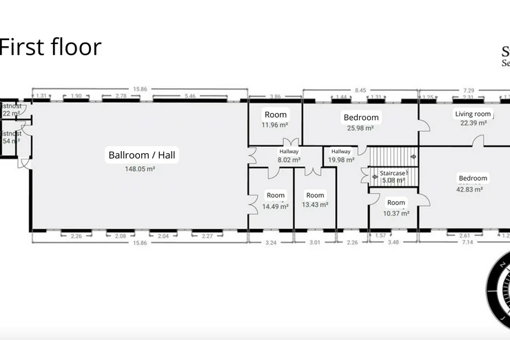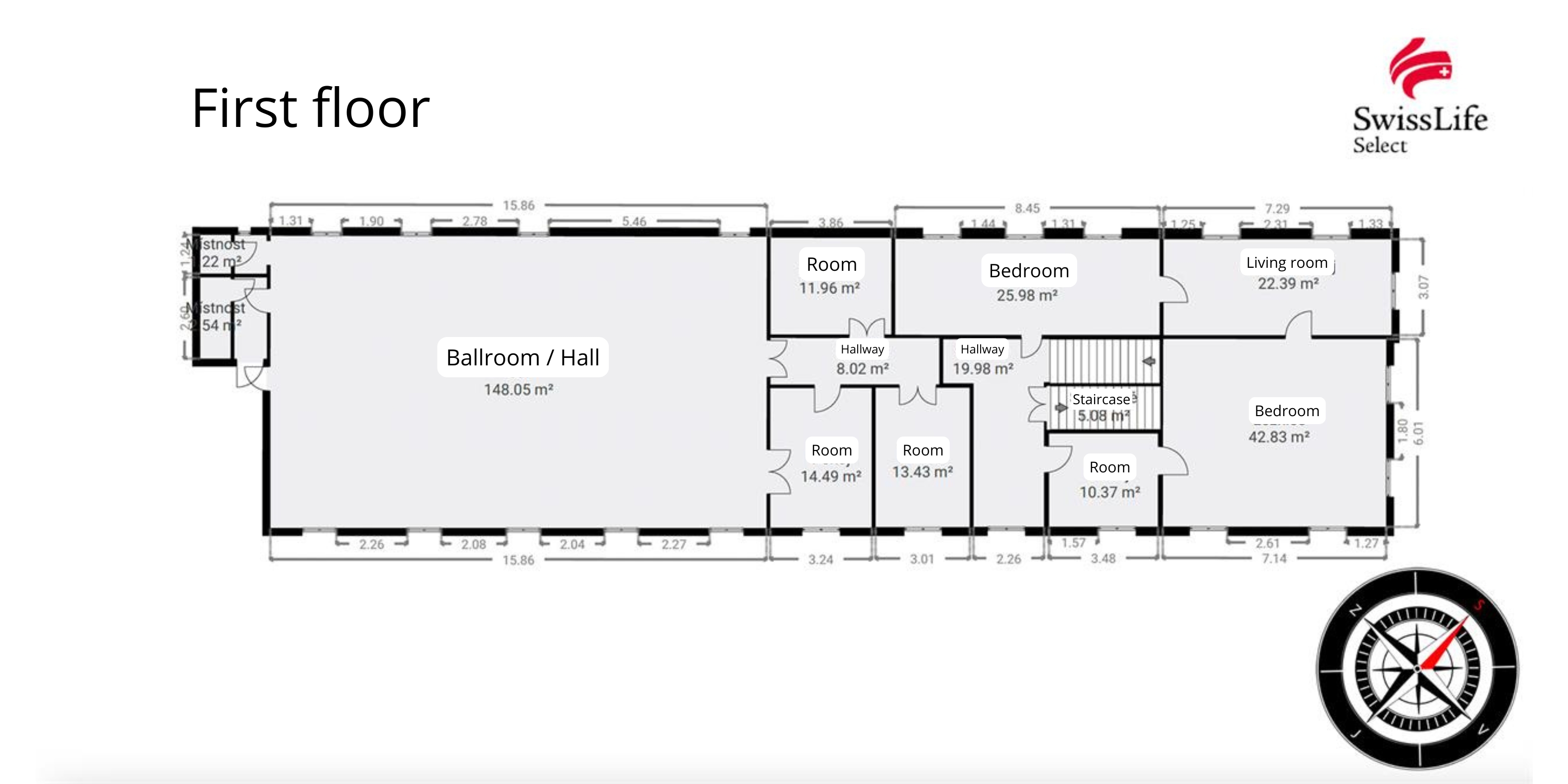 Boasting a usable area of 620 m² and an additional 280 m² provided by the barn, this property invites you into a world of potential. Imagine creating several apartments, a large family home, or launching an investment project such as a wedding venue – your imagination is the only limit.