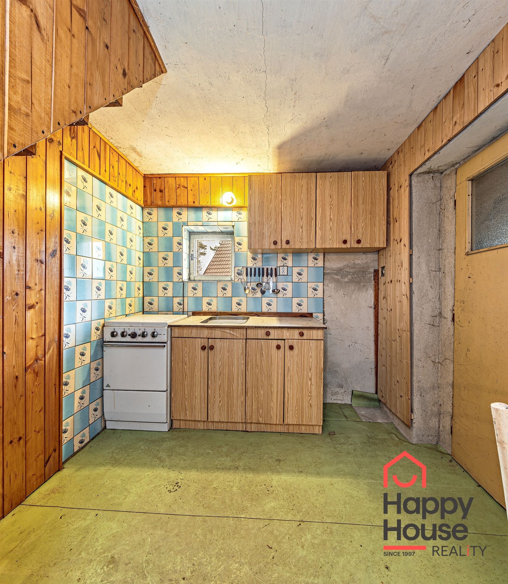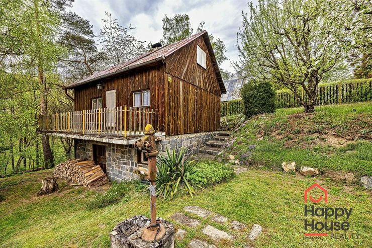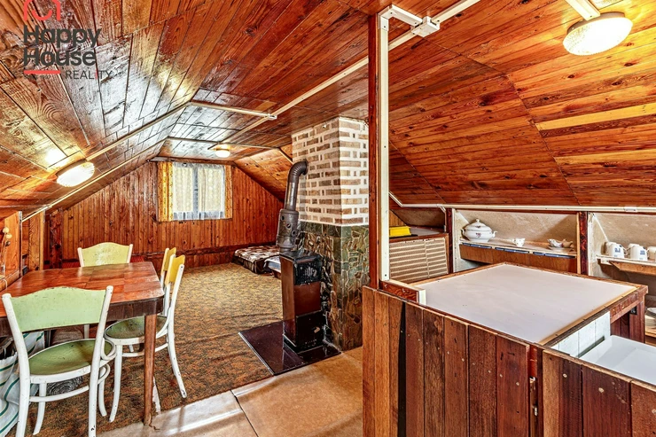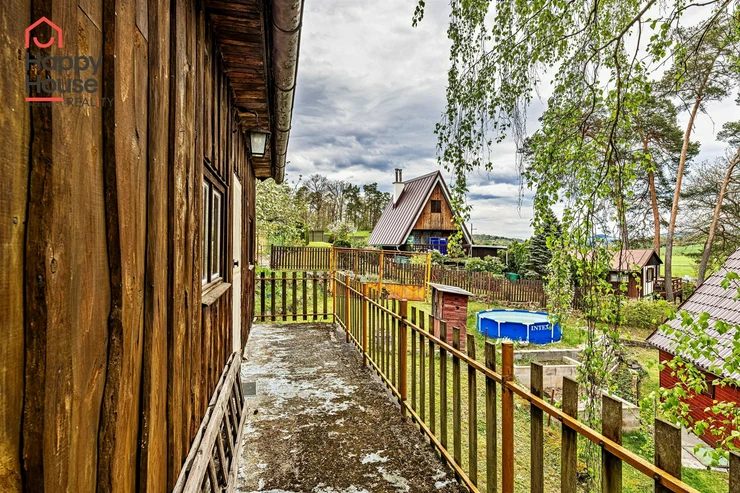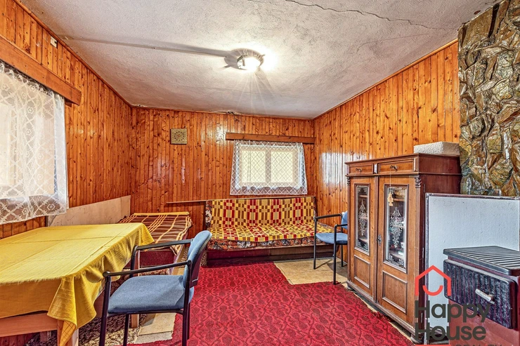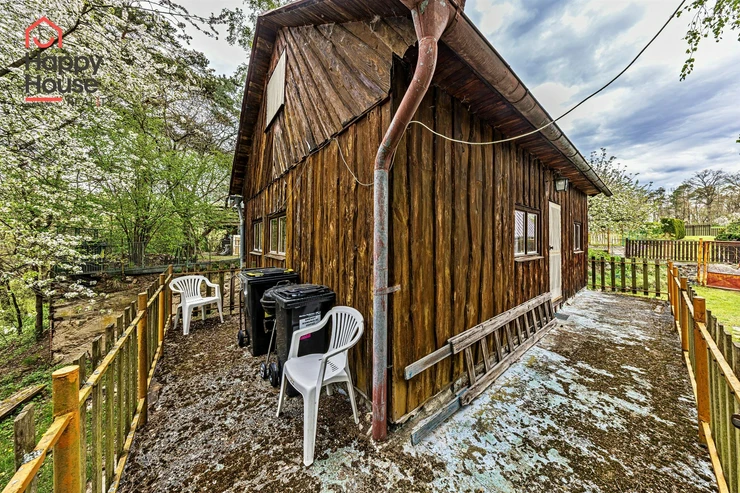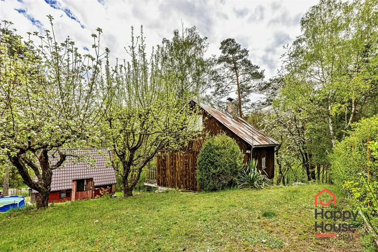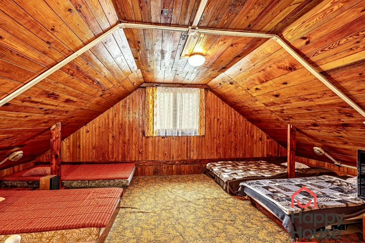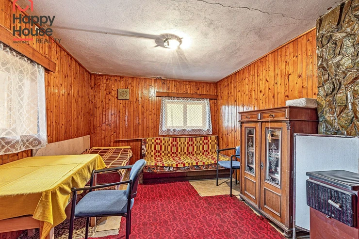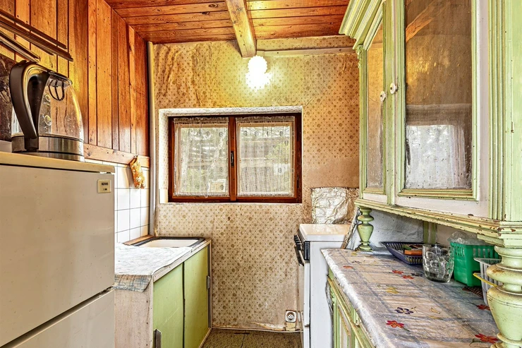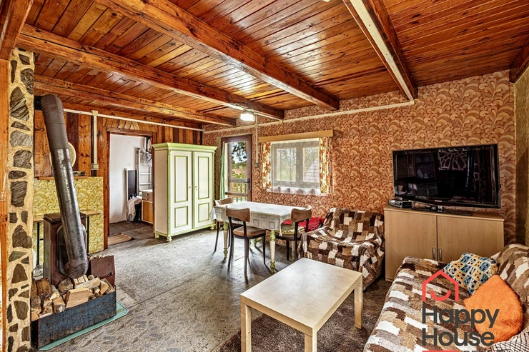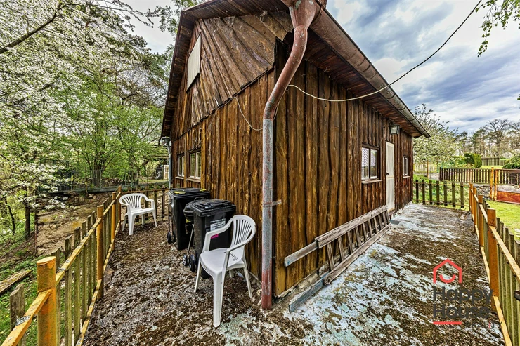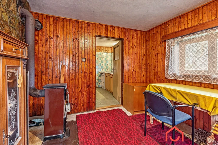 We are offering for sale a three-bedroom brick-built cabin with wooden interior, situated on its own fenced, slightly sloping land in the picturesque location of Vrabčí Brod. The cabin is located in a quiet settlement, where there are only a total of 7 cabins. On the ground floor, there are concrete floors with linoleum and tiles, and on the upper floor, there are wooden planks. Heating is provided by two solid fuel stoves, each with its own chimney. The equipment includes a kitchen unit. The cabin is connected to electricity, gas is installed, water is from a private well, and waste is drained into a septic tank. The only sanitary facility is a toilet – there is no bathroom available. Parking is possible on the property – both in the courtyard and in the garden. The total land area is 391 sqm, the garden is 345 sqm. The built-up area is 46 m², with about 100 sqm of usable space. The location of Vrabčí Brod is 2.5 km from Poříčí nad Sázavou (train, shop, amenities), 1 km from the Sázava River, and only 35 km from Prague. The property is maintained and ready for reconstruction according to your ideas – a great opportunity to create your dream place for relaxation in nature. Energy label is not available – class G is indicated.