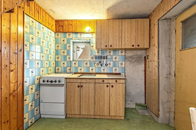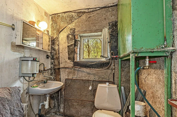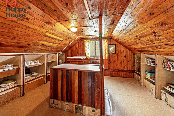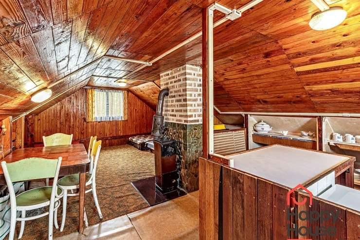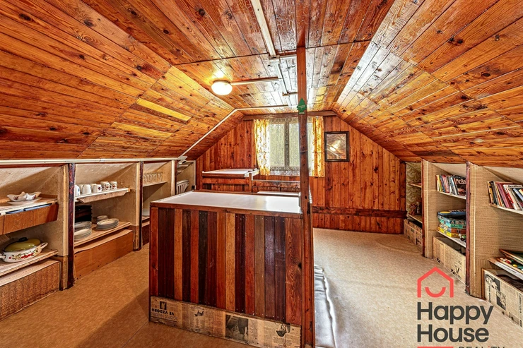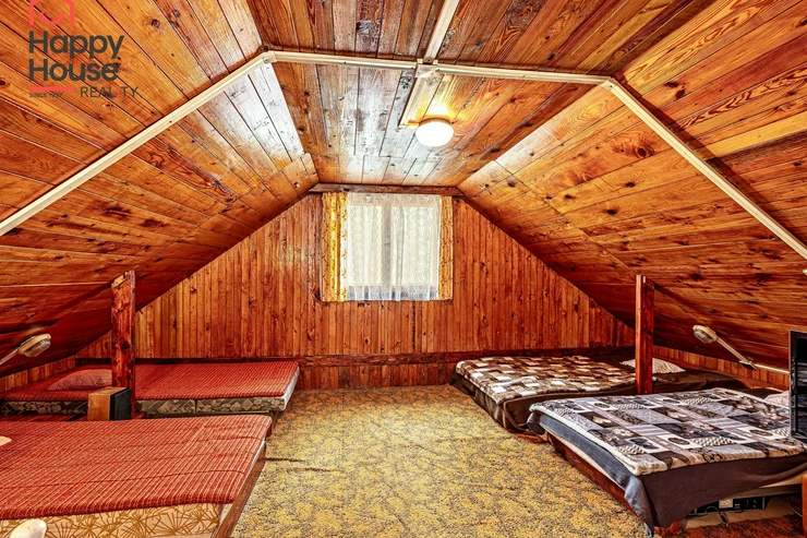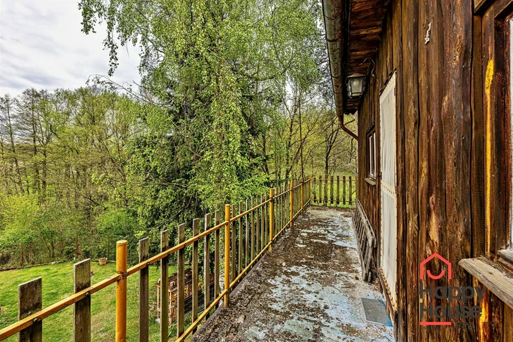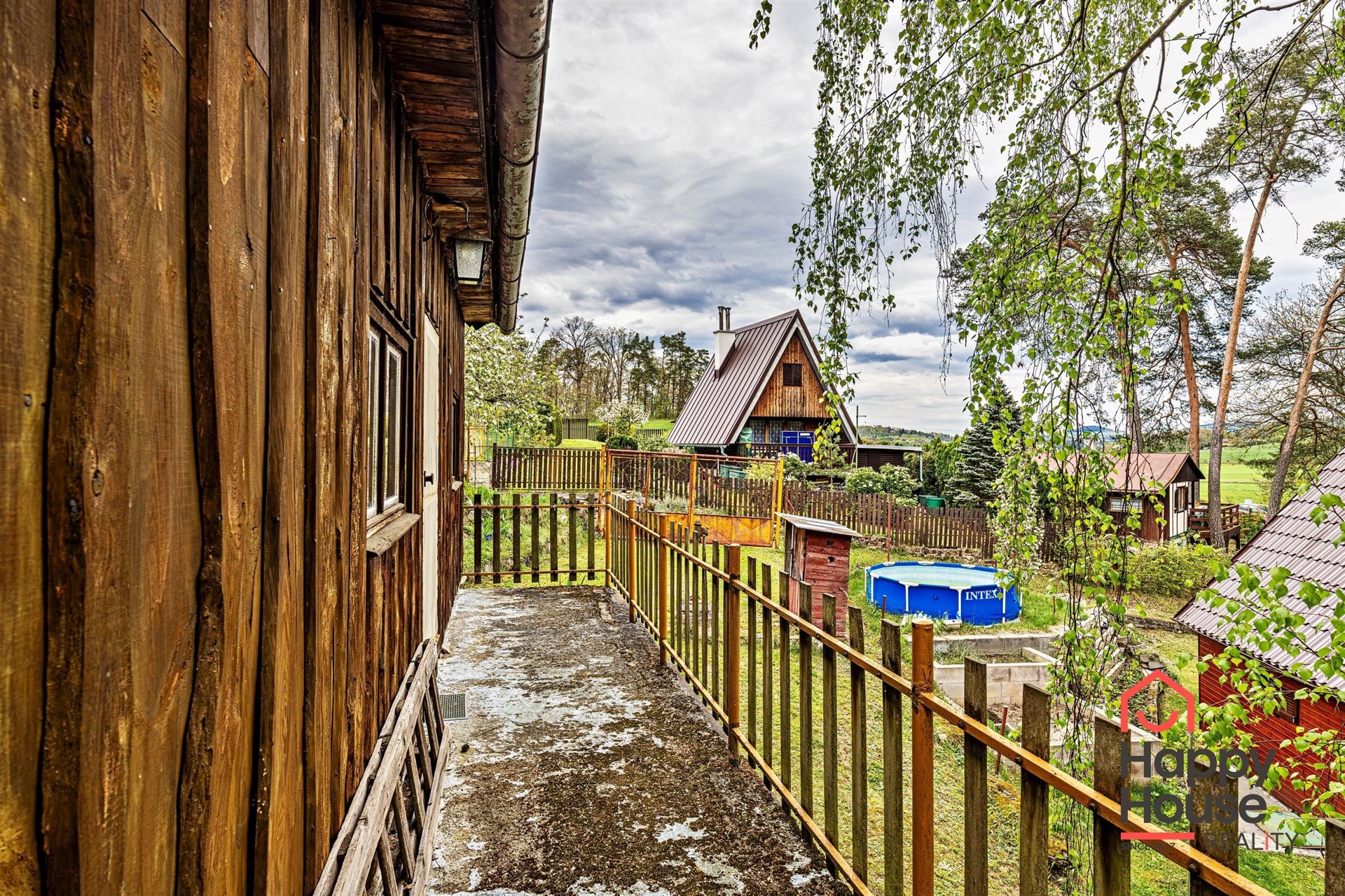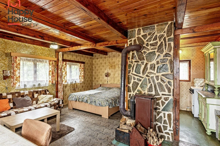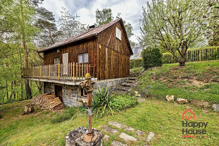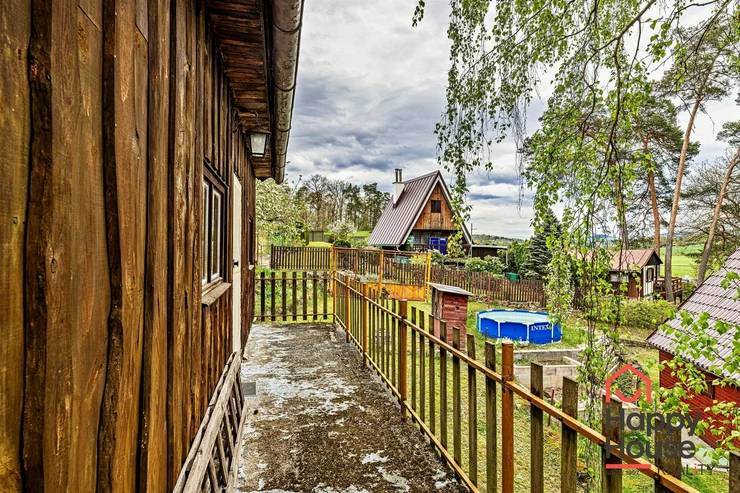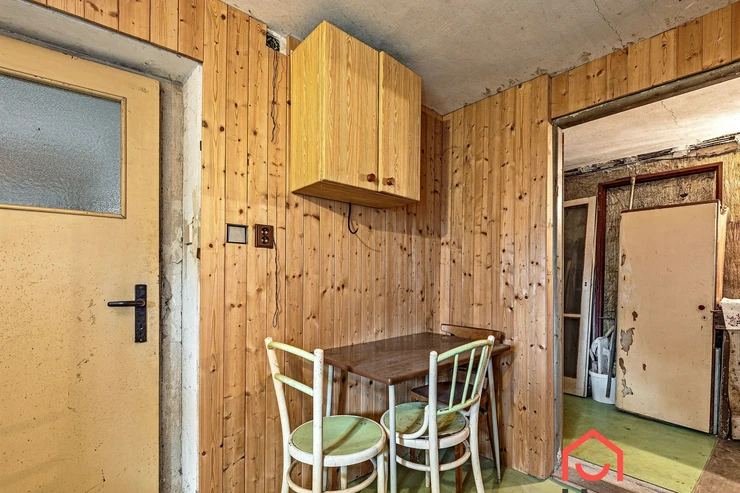 We are offering for sale a three-bedroom brick-built cabin with wooden interior, situated on its own fenced, slightly sloping land in the picturesque location of Vrabčí Brod. The cabin is located in a quiet settlement, where there are only a total of 7 cabins. On the ground floor, there are concrete floors with linoleum and tiles, and on the upper floor, there are wooden planks. Heating is provided by two solid fuel stoves, each with its own chimney. The equipment includes a kitchen unit. The cabin is connected to electricity, gas is installed, water is from a private well, and waste is drained into a septic tank. The only sanitary facility is a toilet – there is no bathroom available. Parking is possible on the property – both in the courtyard and in the garden. The total land area is 391 sqm, the garden is 345 sqm. The built-up area is 46 m², with about 100 sqm of usable space. The location of Vrabčí Brod is 2.5 km from Poříčí nad Sázavou (train, shop, amenities), 1 km from the Sázava River, and only 35 km from Prague. The property is maintained and ready for reconstruction according to your ideas – a great opportunity to create your dream place for relaxation in nature. Energy label is not available – class G is indicated.