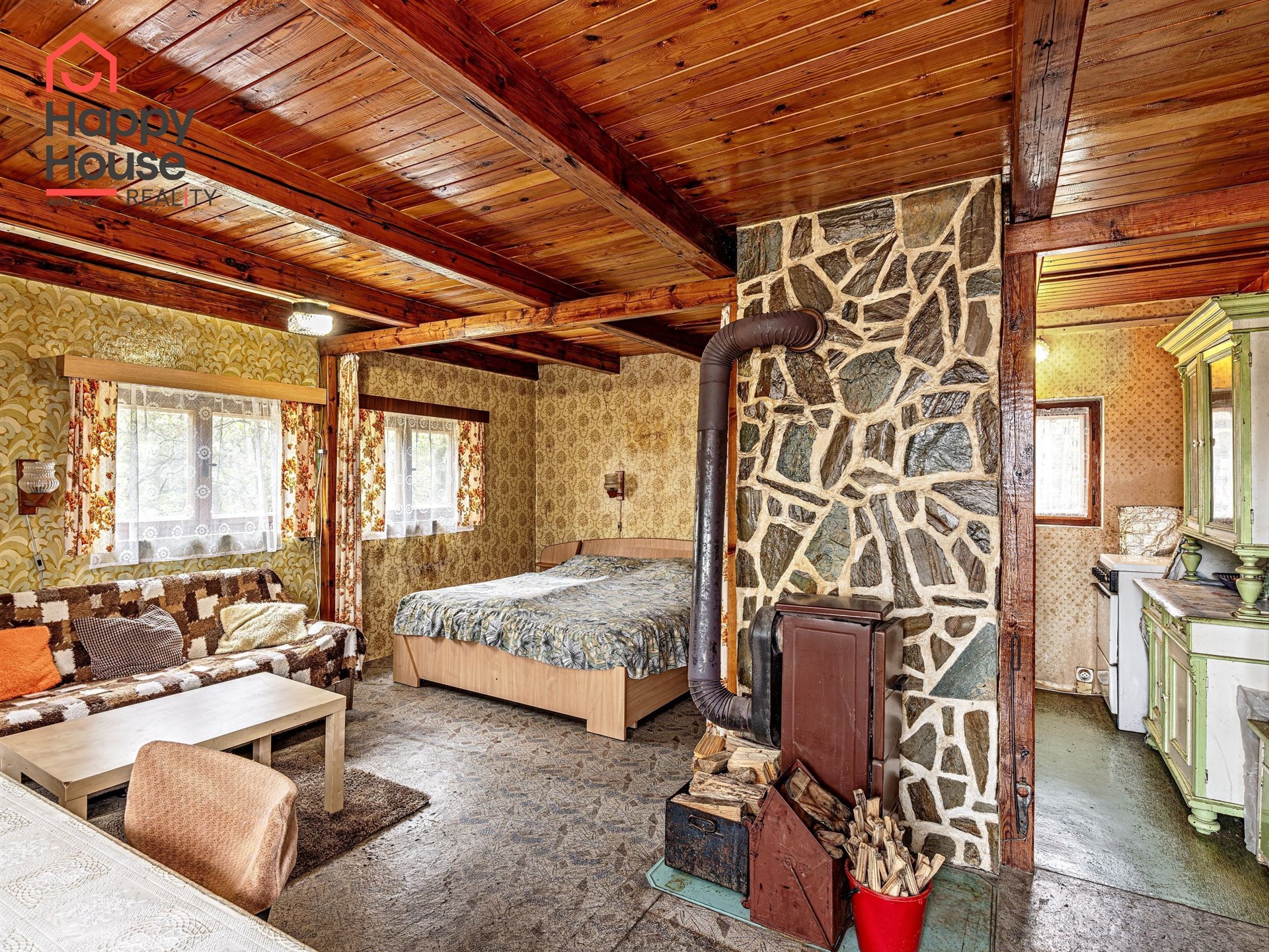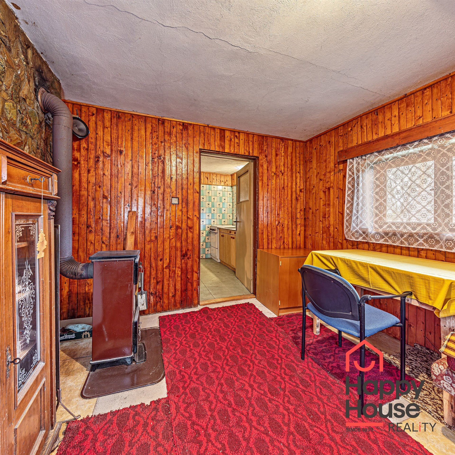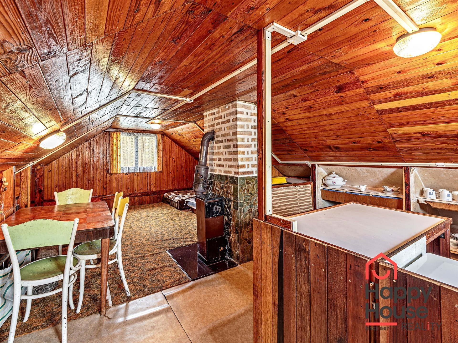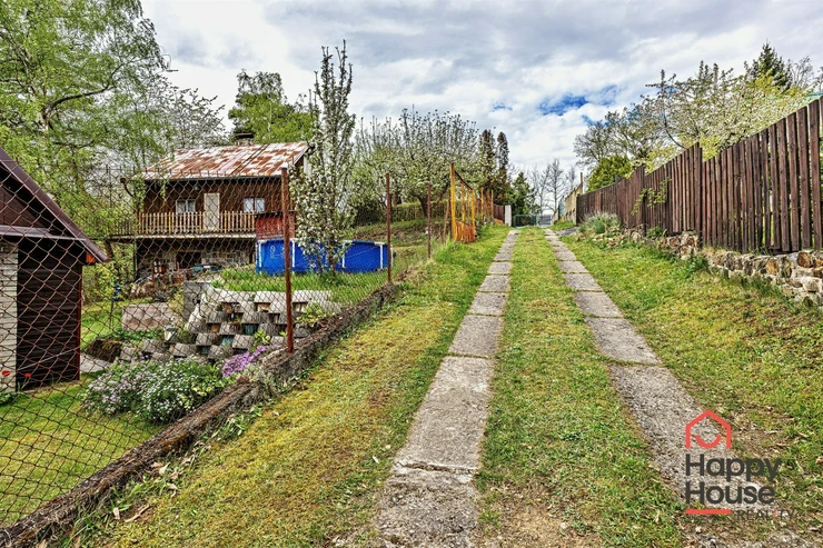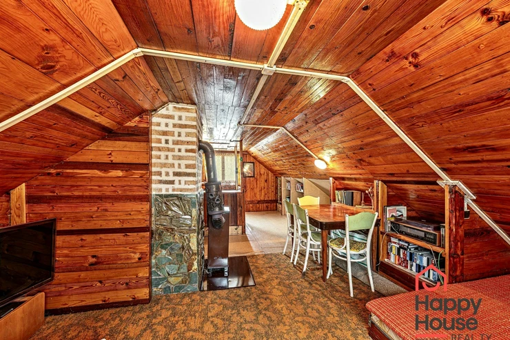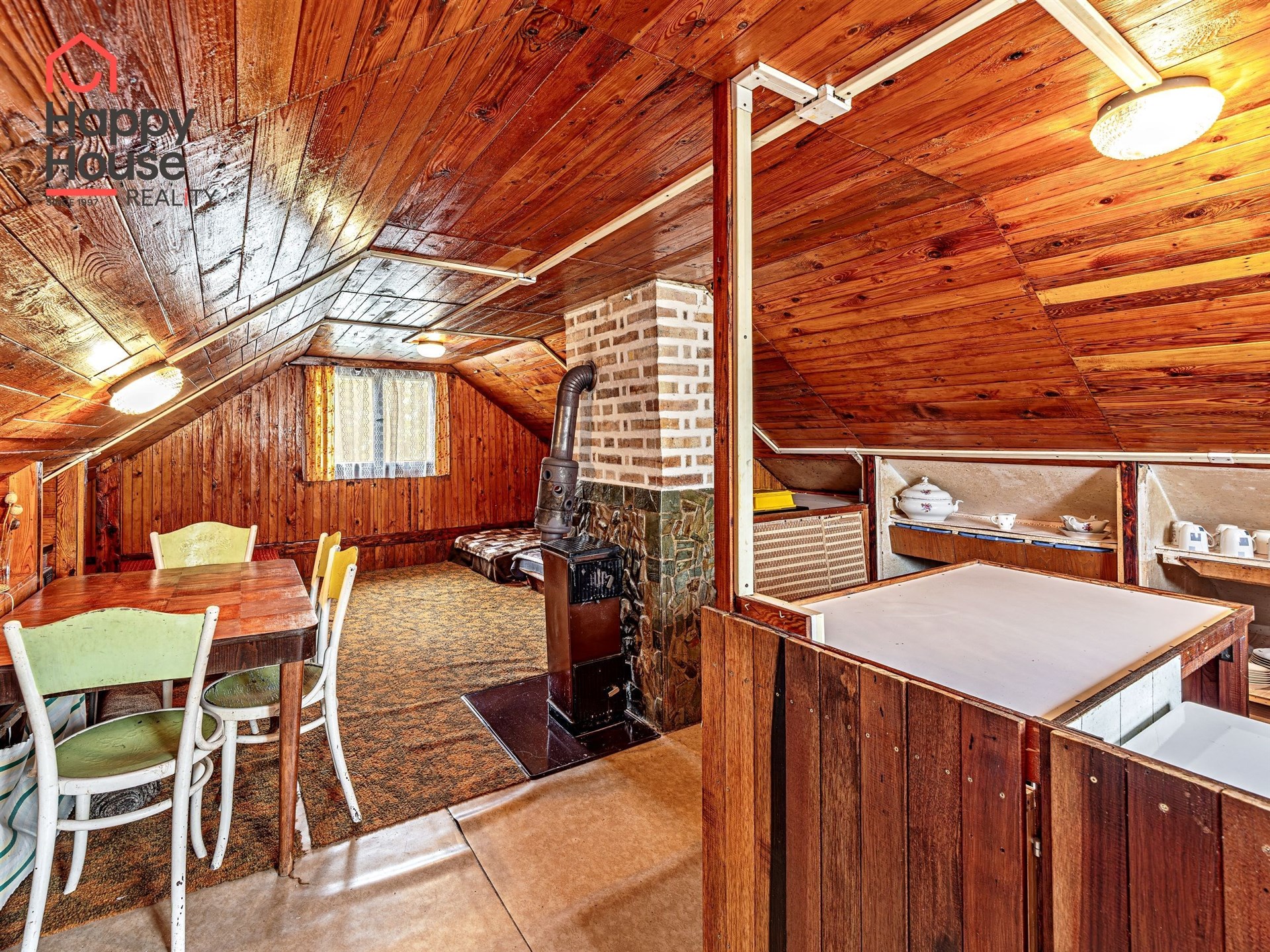 We are offering for sale a three-bedroom brick-built cabin with wooden interior, situated on its own fenced, slightly sloping land in the picturesque location of Vrabčí Brod. The cabin is located in a quiet settlement, where there are only a total of 7 cabins. On the ground floor, there are concrete floors with linoleum and tiles, and on the upper floor, there are wooden planks. Heating is provided by two solid fuel stoves, each with its own chimney. The equipment includes a kitchen unit. The cabin is connected to electricity, gas is installed, water is from a private well, and waste is drained into a septic tank. The only sanitary facility is a toilet – there is no bathroom available. Parking is possible on the property – both in the courtyard and in the garden. The total land area is 391 sqm, the garden is 345 sqm. The built-up area is 46 m², with about 100 sqm of usable space. The location of Vrabčí Brod is 2.5 km from Poříčí nad Sázavou (train, shop, amenities), 1 km from the Sázava River, and only 35 km from Prague. The property is maintained and ready for reconstruction according to your ideas – a great opportunity to create your dream place for relaxation in nature. Energy label is not available – class G is indicated.