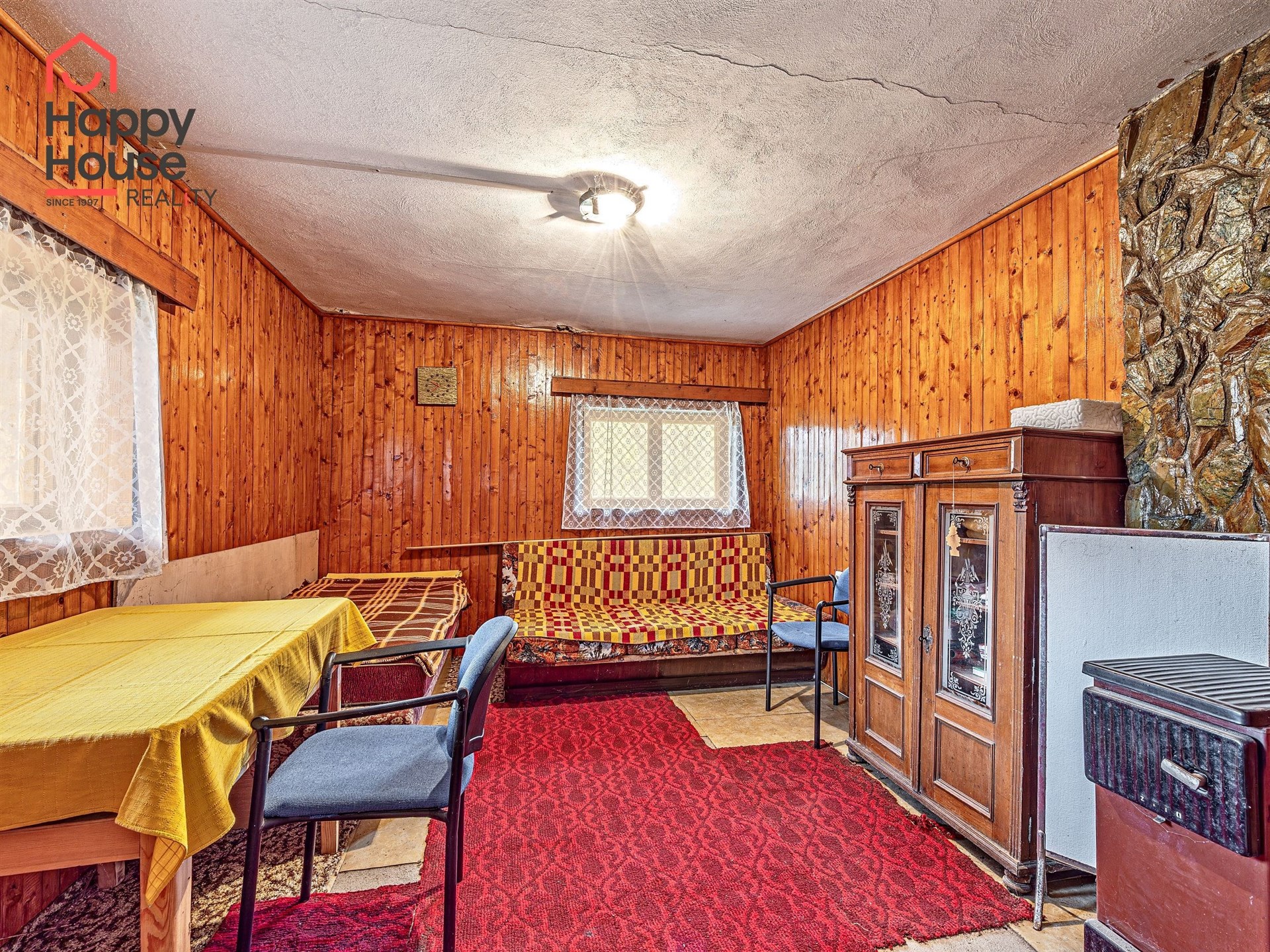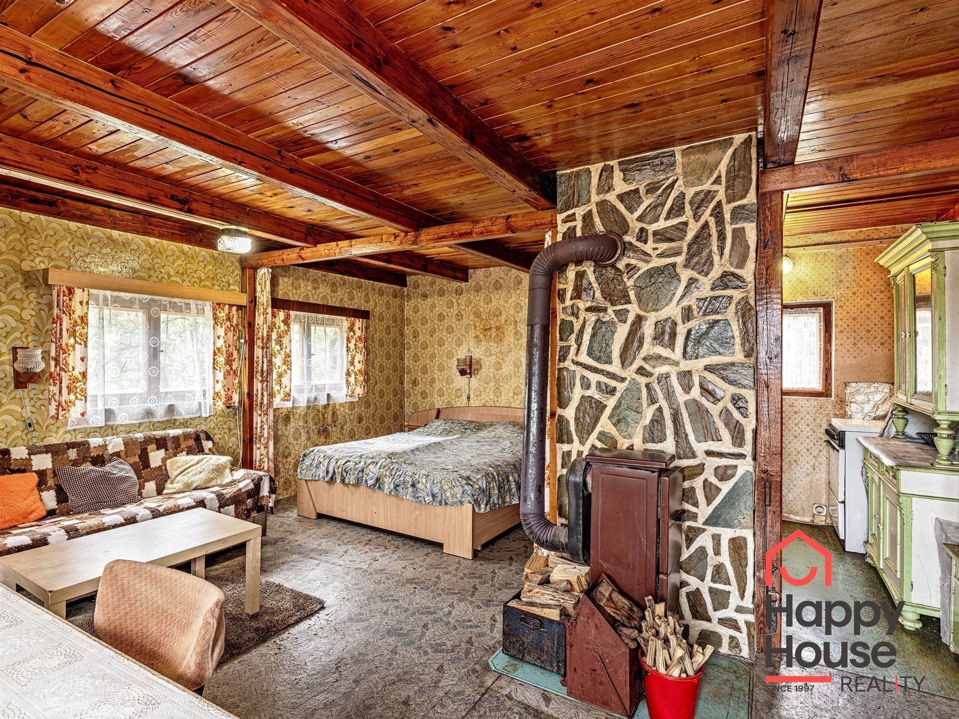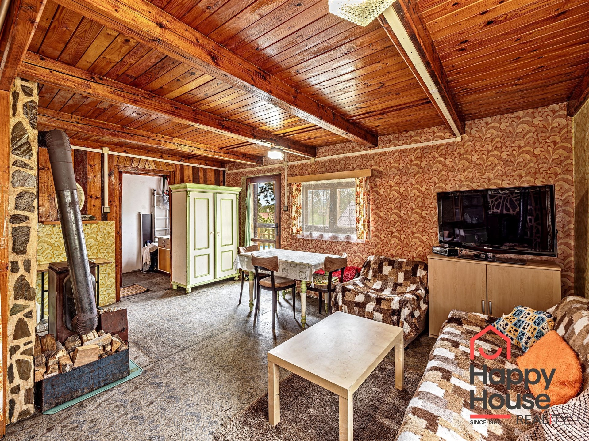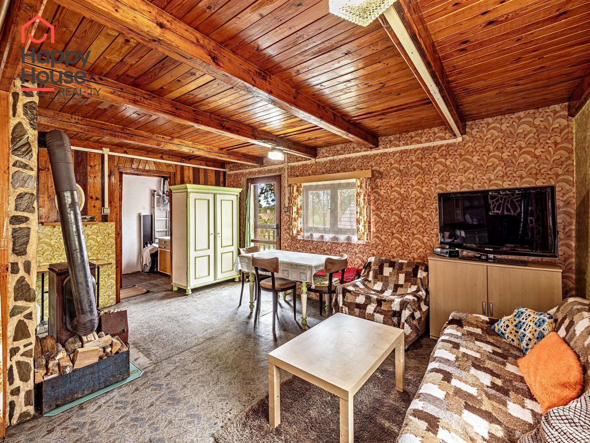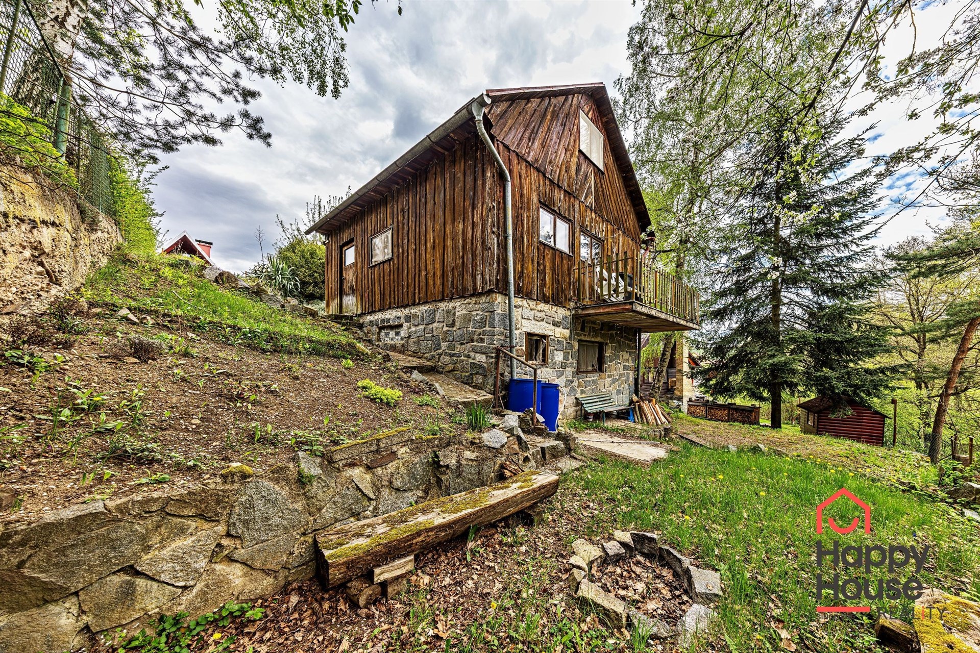 We are offering for sale a three-bedroom brick-built cabin with wooden interior, situated on its own fenced, slightly sloping land in the picturesque location of Vrabčí Brod. The cabin is located in a quiet settlement, where there are only a total of 7 cabins. On the ground floor, there are concrete floors with linoleum and tiles, and on the upper floor, there are wooden planks. Heating is provided by two solid fuel stoves, each with its own chimney. The equipment includes a kitchen unit. The cabin is connected to electricity, gas is installed, water is from a private well, and waste is drained into a septic tank. The only sanitary facility is a toilet – there is no bathroom available. Parking is possible on the property – both in the courtyard and in the garden. The total land area is 391 sqm, the garden is 345 sqm. The built-up area is 46 m², with about 100 sqm of usable space. The location of Vrabčí Brod is 2.5 km from Poříčí nad Sázavou (train, shop, amenities), 1 km from the Sázava River, and only 35 km from Prague. The property is maintained and ready for reconstruction according to your ideas – a great opportunity to create your dream place for relaxation in nature. Energy label is not available – class G is indicated.