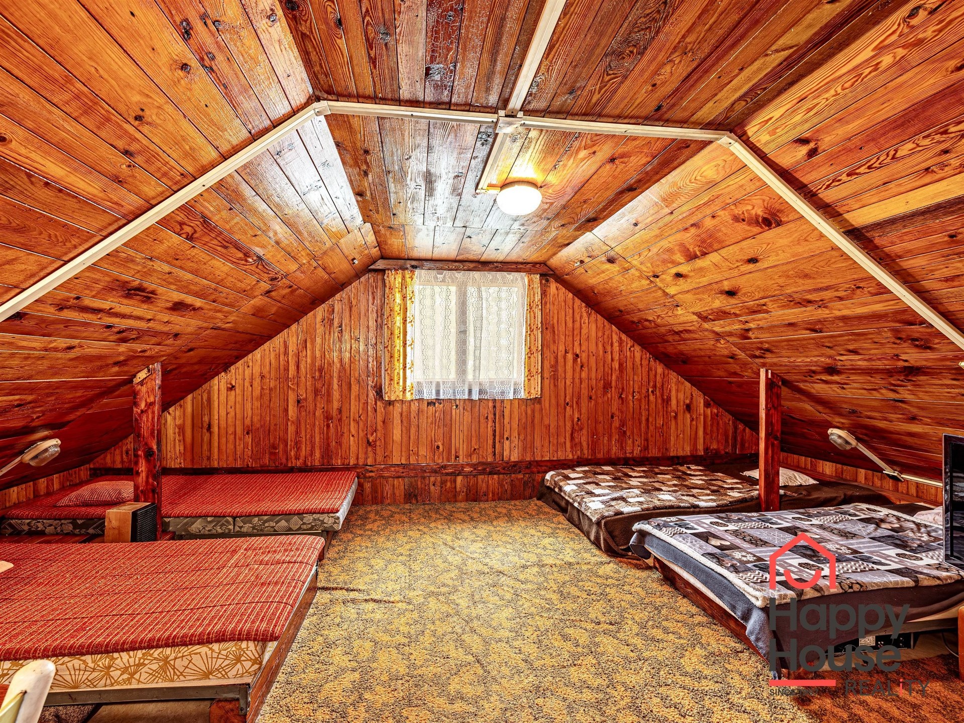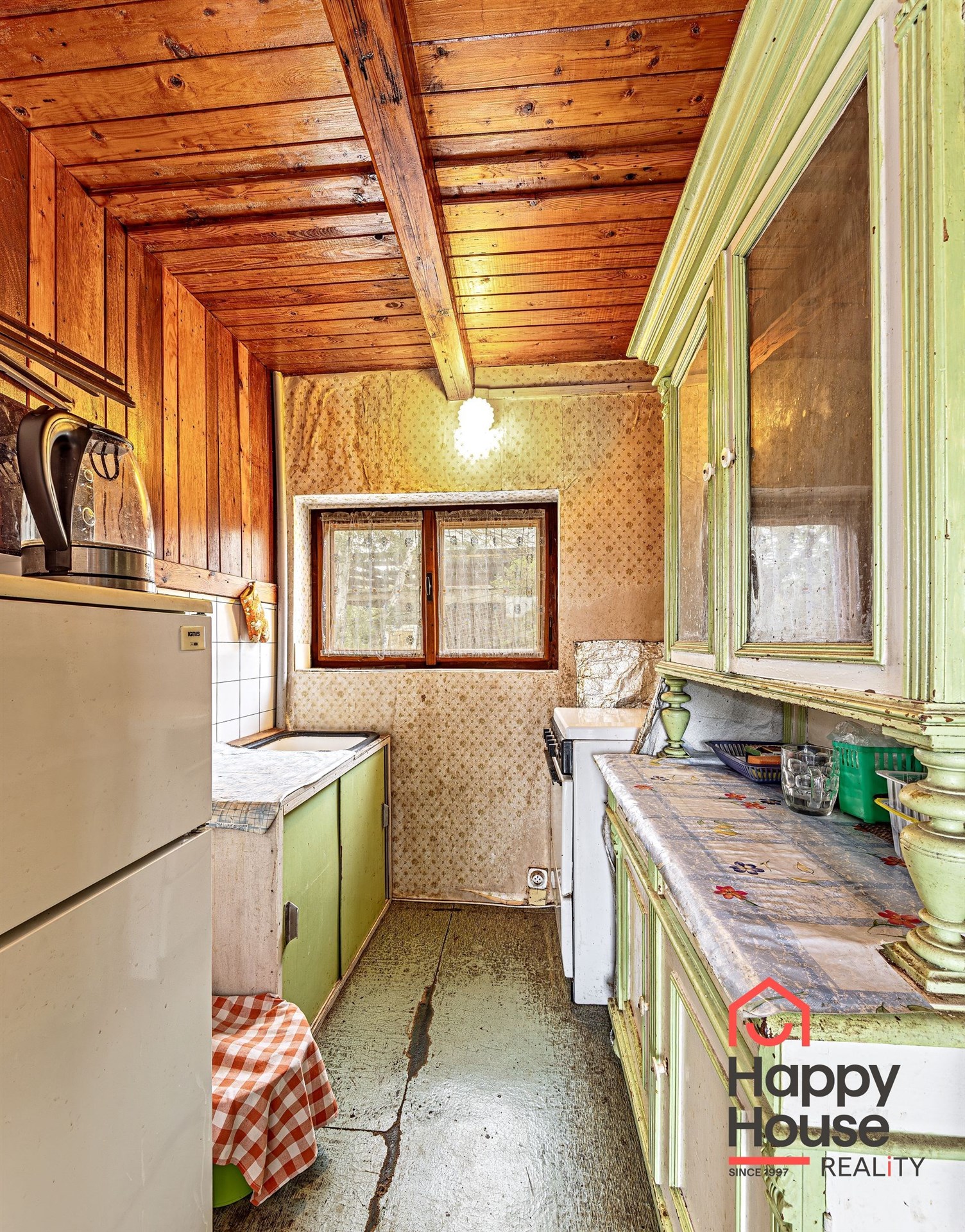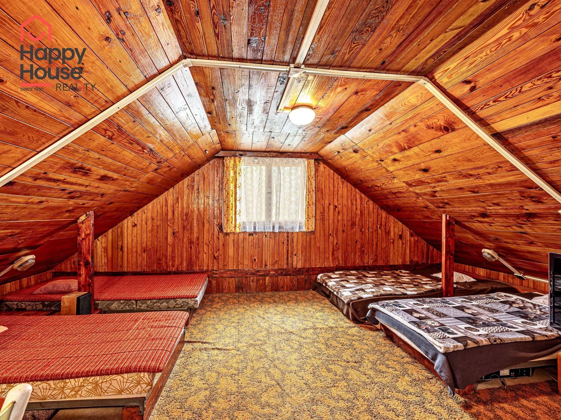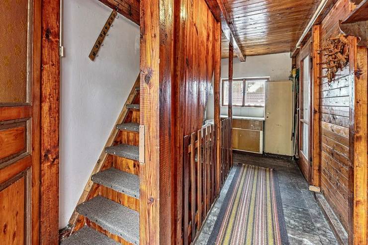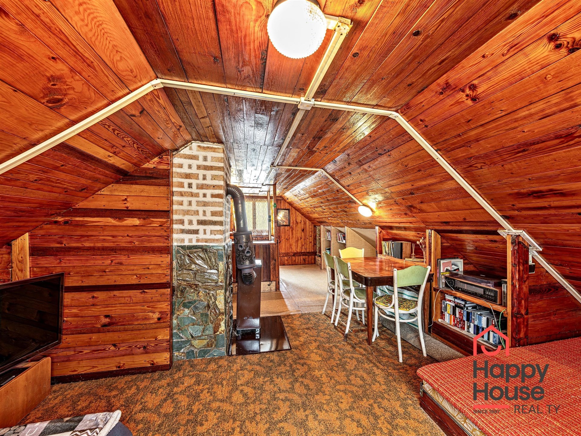 We are offering for sale a three-bedroom brick-built cabin with wooden interior, situated on its own fenced, slightly sloping land in the picturesque location of Vrabčí Brod. The cabin is located in a quiet settlement, where there are only a total of 7 cabins. On the ground floor, there are concrete floors with linoleum and tiles, and on the upper floor, there are wooden planks. Heating is provided by two solid fuel stoves, each with its own chimney. The equipment includes a kitchen unit. The cabin is connected to electricity, gas is installed, water is from a private well, and waste is drained into a septic tank. The only sanitary facility is a toilet – there is no bathroom available. Parking is possible on the property – both in the courtyard and in the garden. The total land area is 391 sqm, the garden is 345 sqm. The built-up area is 46 m², with about 100 sqm of usable space. The location of Vrabčí Brod is 2.5 km from Poříčí nad Sázavou (train, shop, amenities), 1 km from the Sázava River, and only 35 km from Prague. The property is maintained and ready for reconstruction according to your ideas – a great opportunity to create your dream place for relaxation in nature. Energy label is not available – class G is indicated.