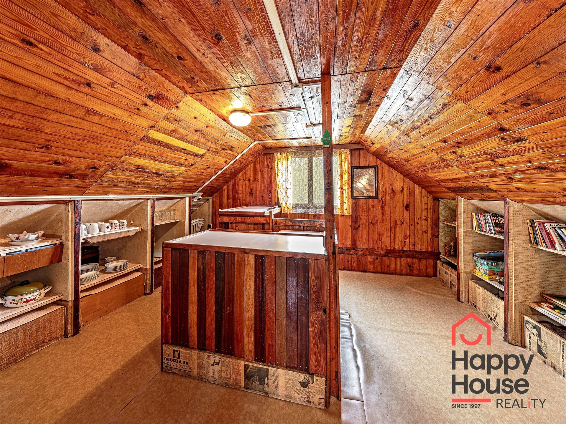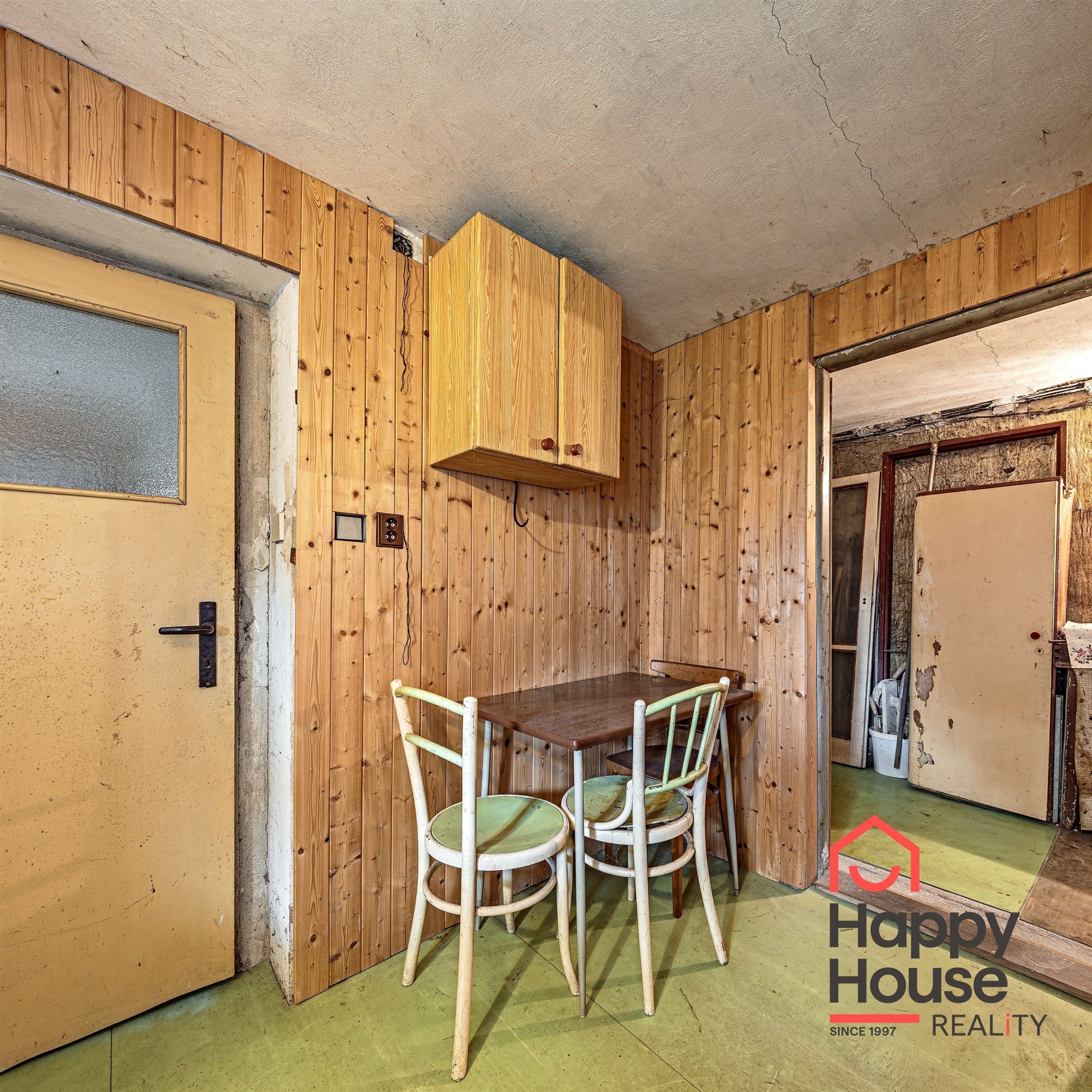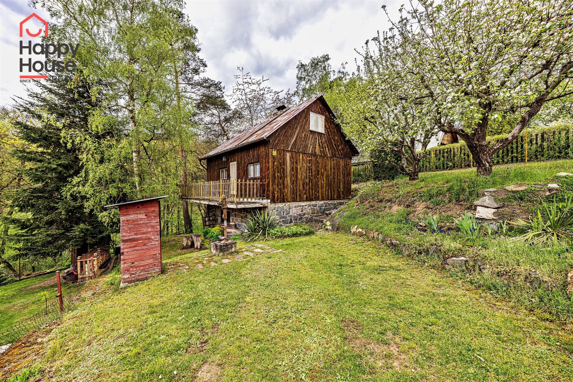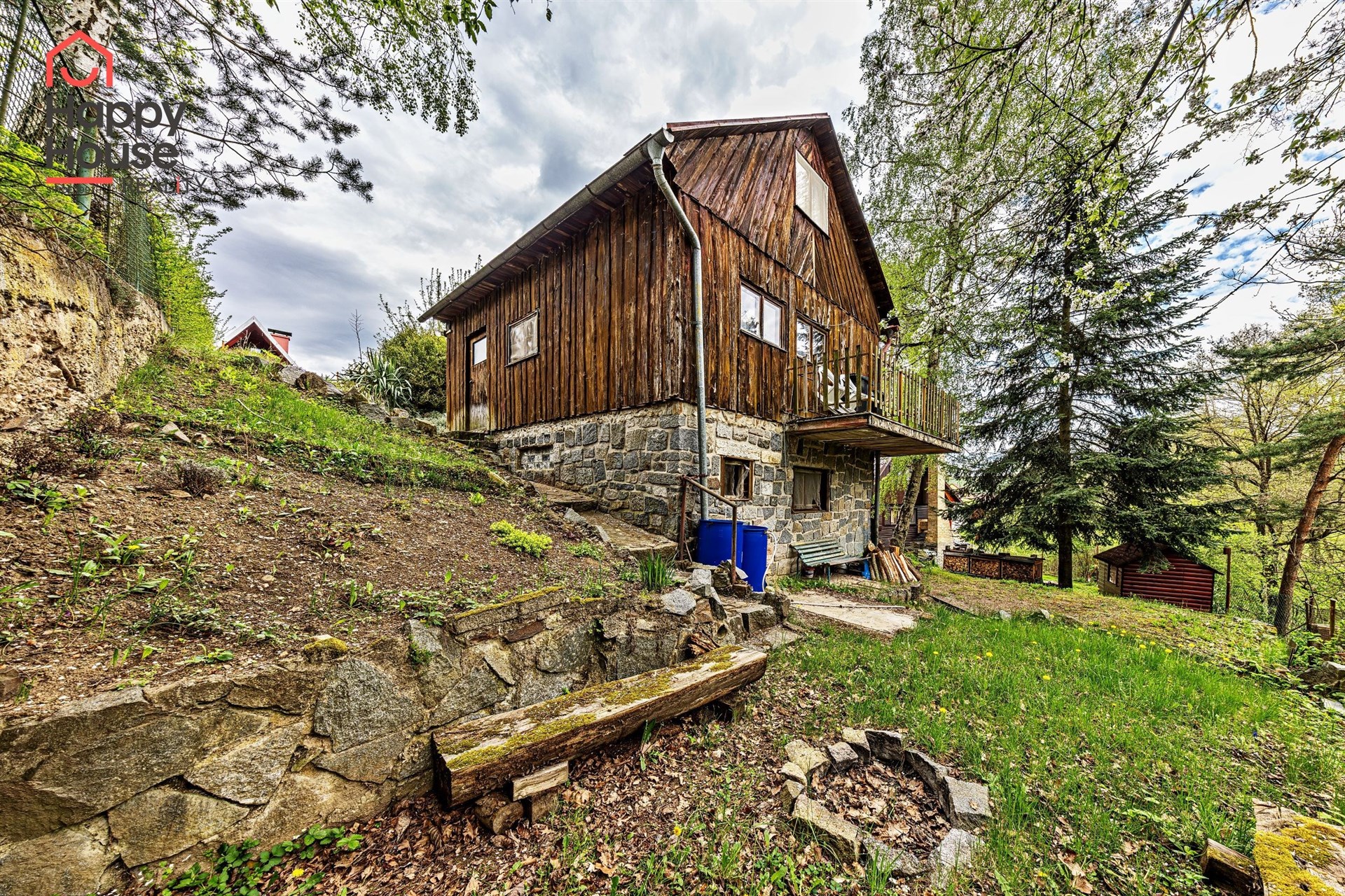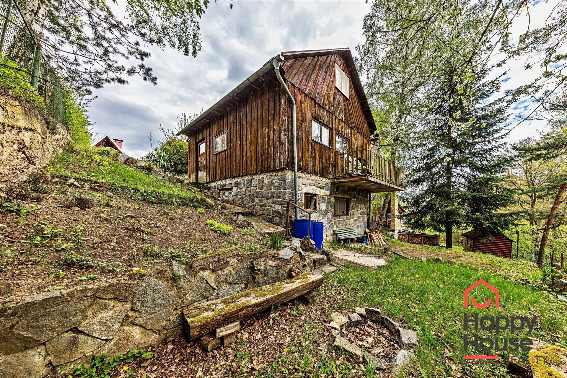 We are offering for sale a three-bedroom brick-built cabin with wooden interior, situated on its own fenced, slightly sloping land in the picturesque location of Vrabčí Brod. The cabin is located in a quiet settlement, where there are only a total of 7 cabins. On the ground floor, there are concrete floors with linoleum and tiles, and on the upper floor, there are wooden planks. Heating is provided by two solid fuel stoves, each with its own chimney. The equipment includes a kitchen unit. The cabin is connected to electricity, gas is installed, water is from a private well, and waste is drained into a septic tank. The only sanitary facility is a toilet – there is no bathroom available. Parking is possible on the property – both in the courtyard and in the garden. The total land area is 391 sqm, the garden is 345 sqm. The built-up area is 46 m², with about 100 sqm of usable space. The location of Vrabčí Brod is 2.5 km from Poříčí nad Sázavou (train, shop, amenities), 1 km from the Sázava River, and only 35 km from Prague. The property is maintained and ready for reconstruction according to your ideas – a great opportunity to create your dream place for relaxation in nature. Energy label is not available – class G is indicated.