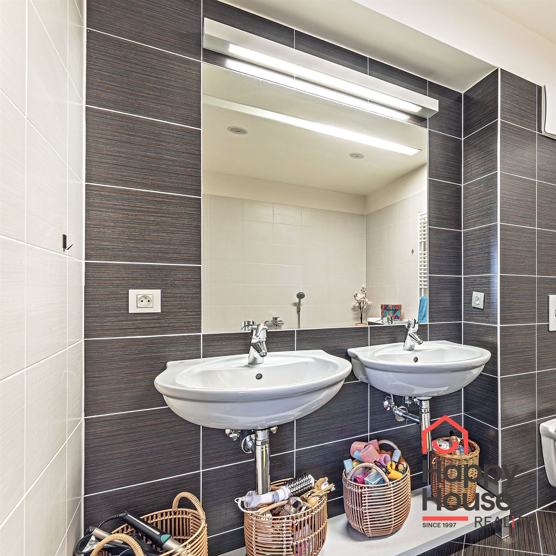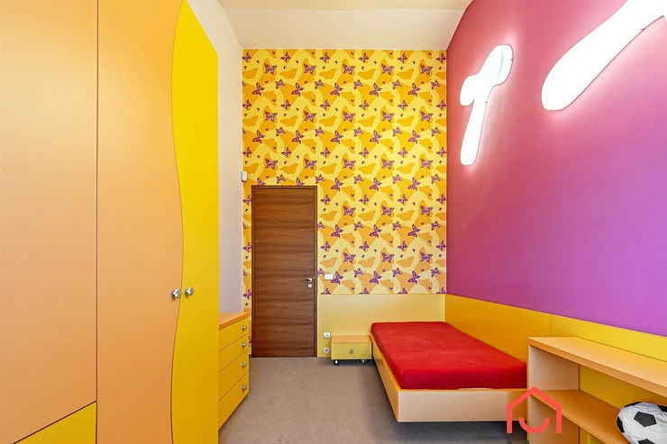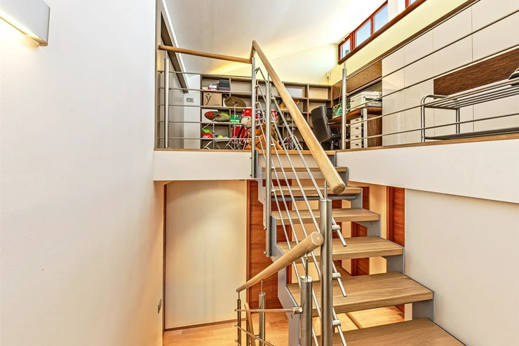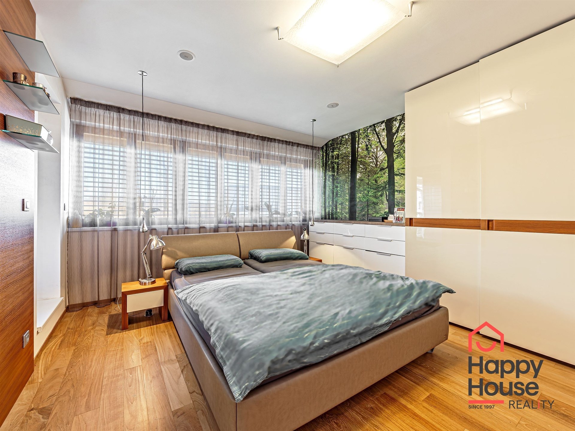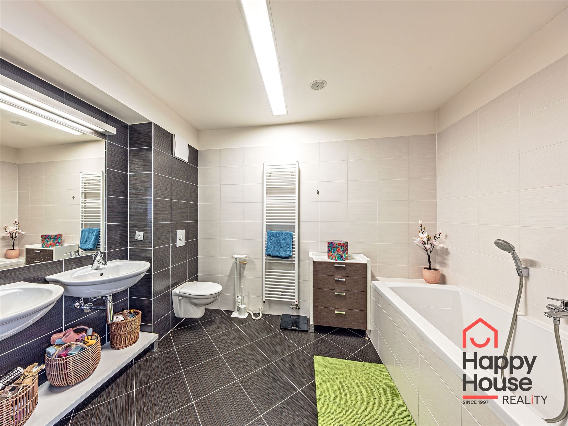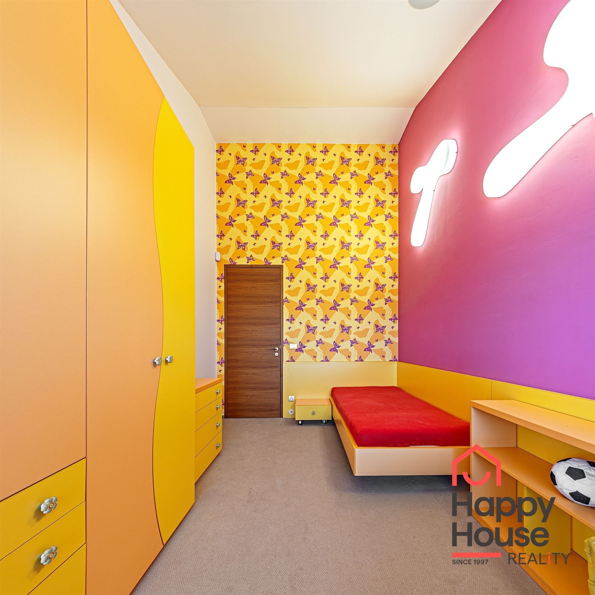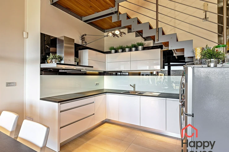 We offer for sale a terraced four-bedroom family house, including a garage and garden, located in the quiet and exclusive area of the Závodí golf resort near the Beroun Golf Club. The house was built approximately 15 years ago and is situated on a plot of 280 sqm. The built-up area is 107 sqm, with a courtyard in front of the house measuring 37 sqm, and also includes a share of a common courtyard area of 377 sqm (1/8 share). The garden behind the house is 184 sqm and offers views of the surrounding countryside. On the ground floor, there is an entrance hall, guest bedroom and a garage; downstairs leads to a spacious living room with a kitchenette, staircase, and direct access to the terrace and garden, and a separate toilet. The first floor features a bedroom, two children's rooms with access to a partially covered balcony, two bathrooms, and a second partially covered balcony. The top floor contains an open-plan office on a gallery and a walk-in closet. One bathroom has a bathtub, two sinks, a toilet, and a heating ladder. The other bathroom has a shower, sink, toilet, heating ladder, washing machine, and dryer. The kitchen is fully equipped - electric and microwave ovens, dishwasher, fridge with freezer, and extractor hood. Ample storage space is provided by built-in wardrobes. Tiling is laid in the ground floor, bathrooms, and toilet, floating flooring in the upper floors, walk-in closet, gallery, and bedroom, and carpets in the rooms. Heating is provided by a gas boiler. Parking is available both in the garage and on two parking spaces on the property in front of the house. The house is located at the end of a dead-end asphalt road with a barrier, entry is allowed only for residents, ensuring peace and security. The property offers beautiful views to the northwest and southeast, directly by the golf course - ideal for lovers of nature, sports, and privacy. No energy label is available - class G is listed.