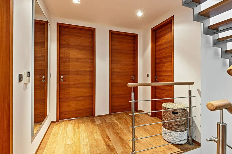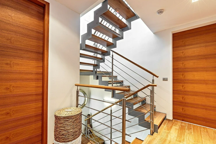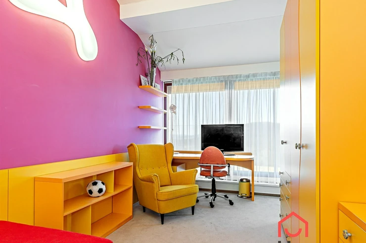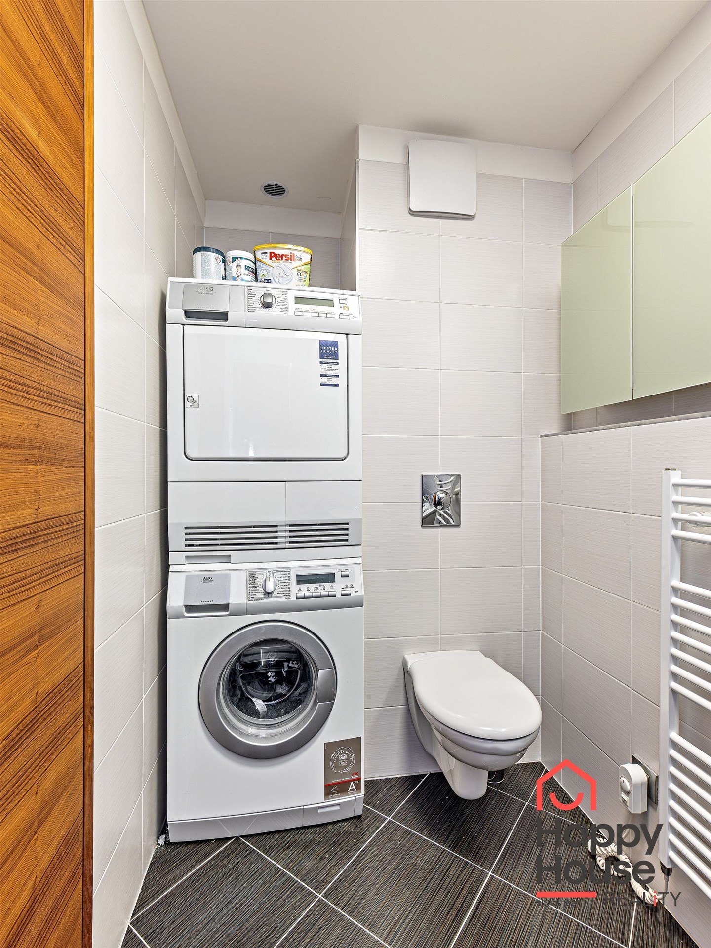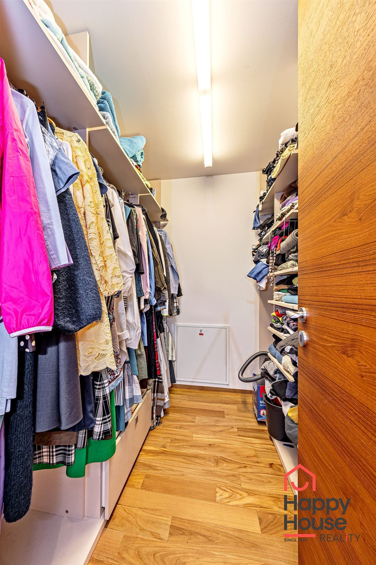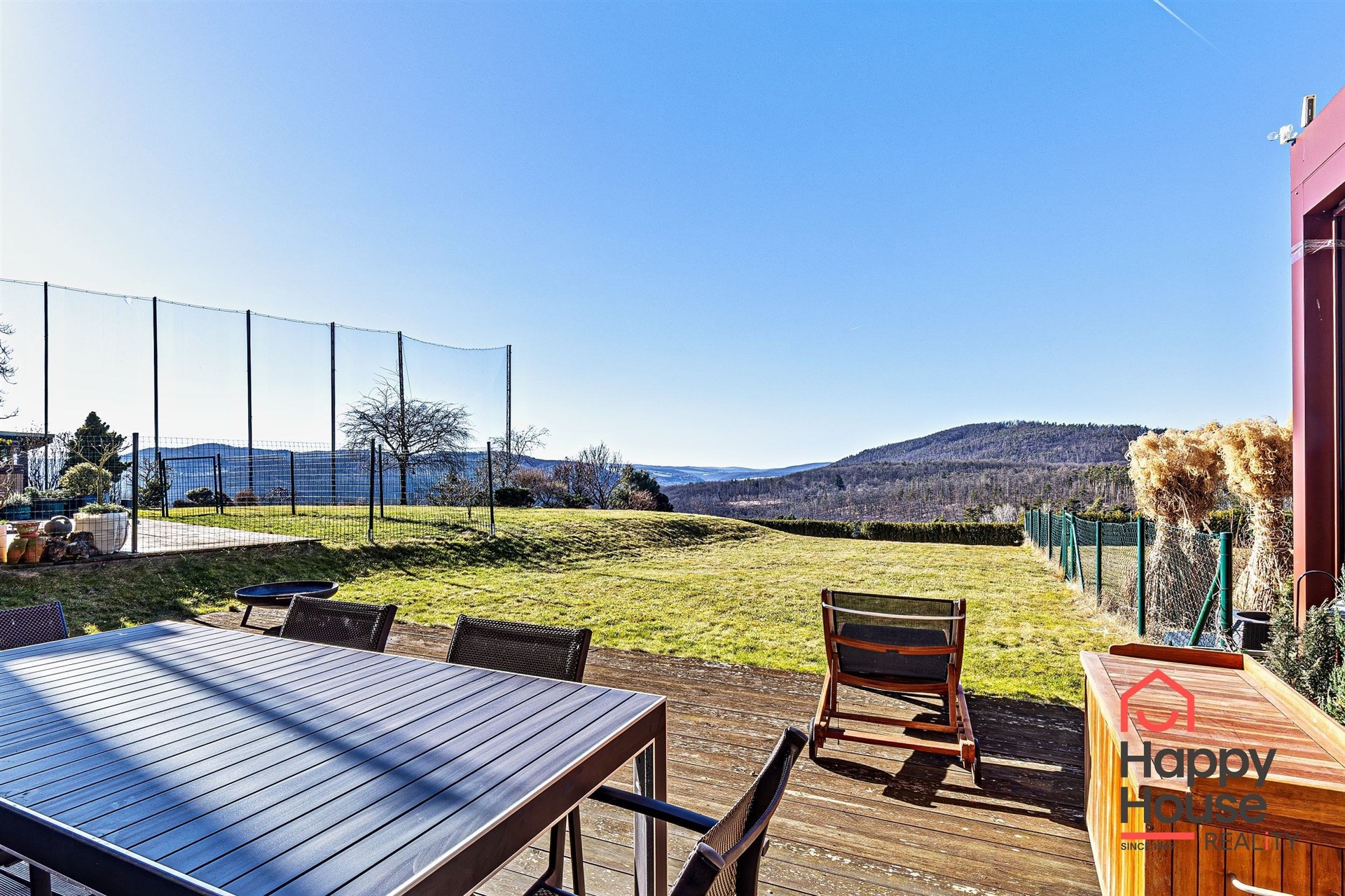 We offer for sale a terraced four-bedroom family house, including a garage and garden, located in the quiet and exclusive area of the Závodí golf resort near the Beroun Golf Club. The house was built approximately 15 years ago and is situated on a plot of 280 sqm. The built-up area is 107 sqm, with a courtyard in front of the house measuring 37 sqm, and also includes a share of a common courtyard area of 377 sqm (1/8 share). The garden behind the house is 184 sqm and offers views of the surrounding countryside. On the ground floor, there is an entrance hall, guest bedroom and a garage; downstairs leads to a spacious living room with a kitchenette, staircase, and direct access to the terrace and garden, and a separate toilet. The first floor features a bedroom, two children's rooms with access to a partially covered balcony, two bathrooms, and a second partially covered balcony. The top floor contains an open-plan office on a gallery and a walk-in closet. One bathroom has a bathtub, two sinks, a toilet, and a heating ladder. The other bathroom has a shower, sink, toilet, heating ladder, washing machine, and dryer. The kitchen is fully equipped - electric and microwave ovens, dishwasher, fridge with freezer, and extractor hood. Ample storage space is provided by built-in wardrobes. Tiling is laid in the ground floor, bathrooms, and toilet, floating flooring in the upper floors, walk-in closet, gallery, and bedroom, and carpets in the rooms. Heating is provided by a gas boiler. Parking is available both in the garage and on two parking spaces on the property in front of the house. The house is located at the end of a dead-end asphalt road with a barrier, entry is allowed only for residents, ensuring peace and security. The property offers beautiful views to the northwest and southeast, directly by the golf course - ideal for lovers of nature, sports, and privacy. No energy label is available - class G is listed.