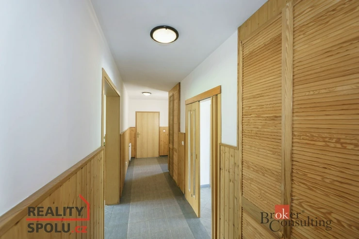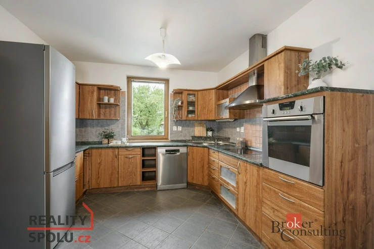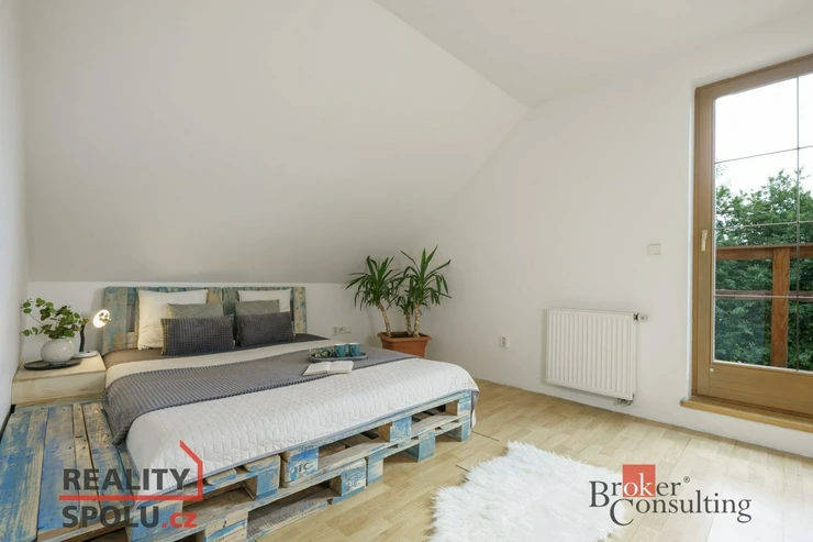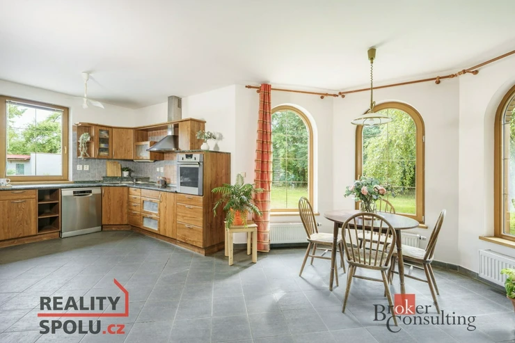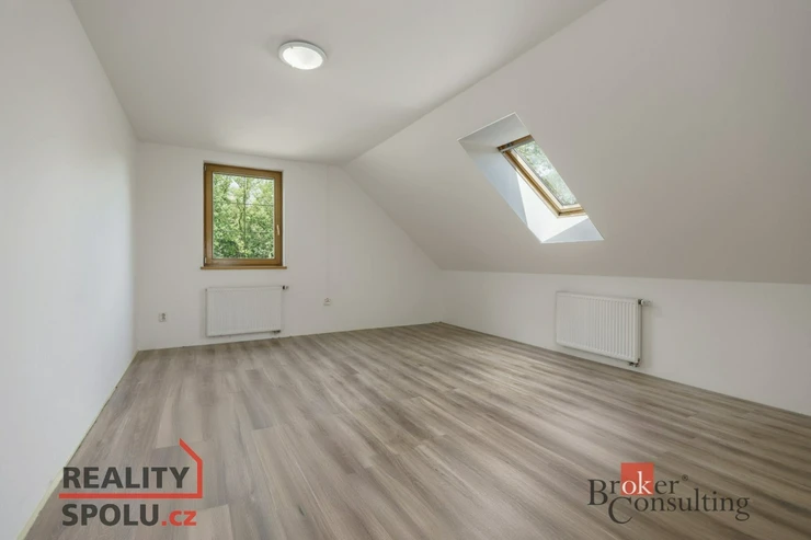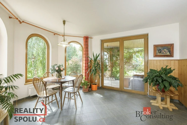 V celém domě jsou dřevěná okna, v přízemí je na podlaze dlažba, v 2. NP se v pokojích nachází plovoucí podlahy.