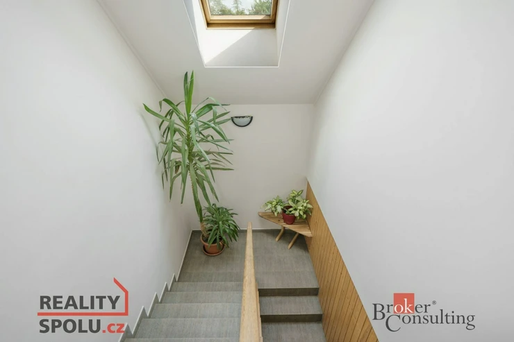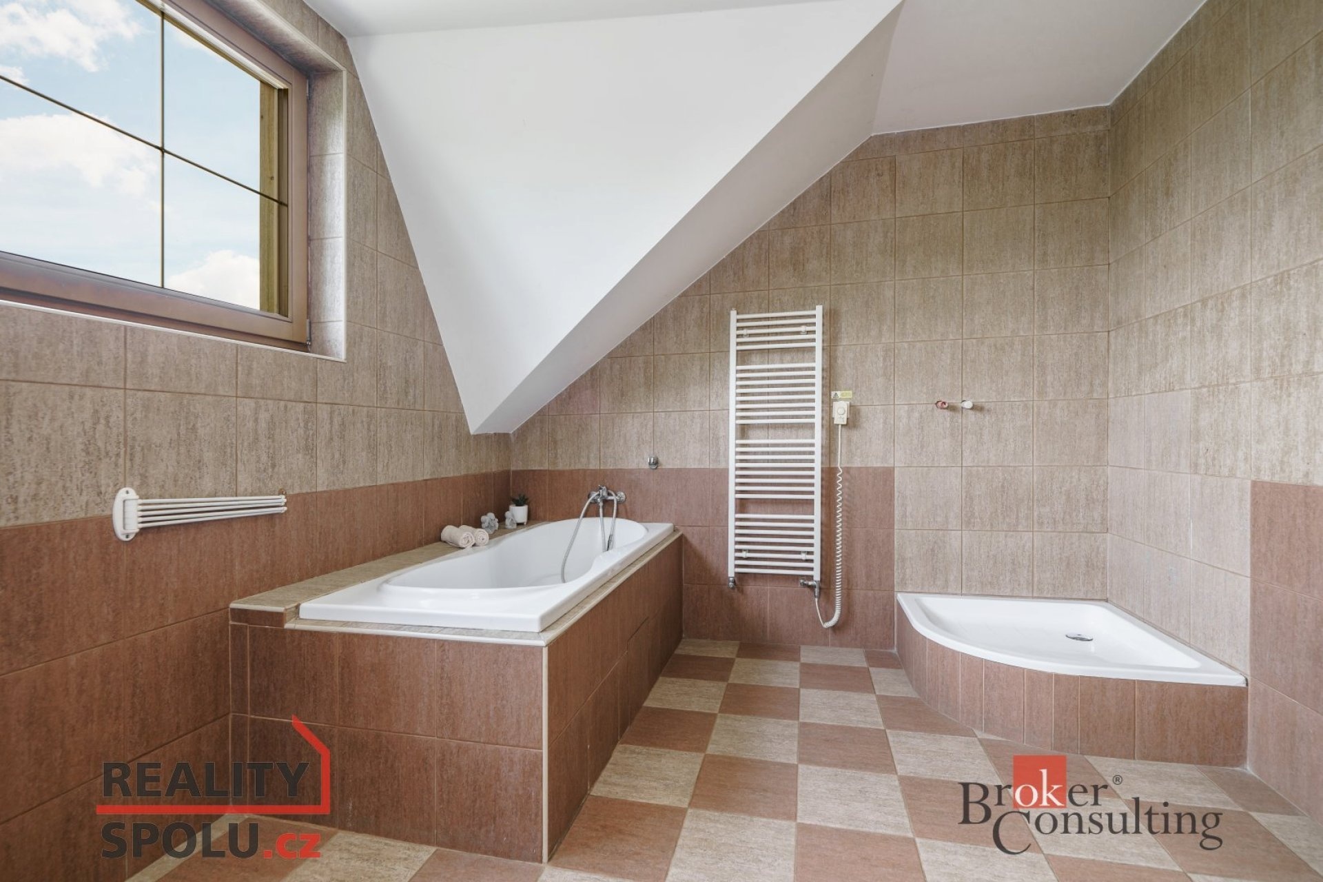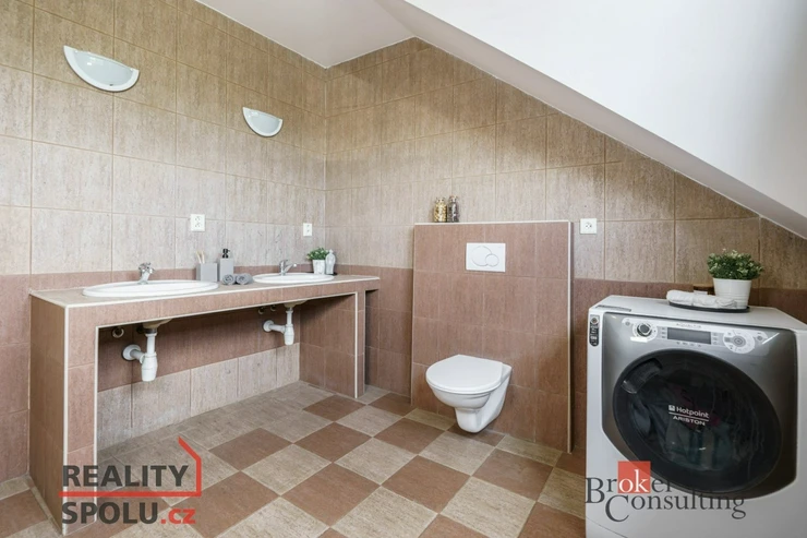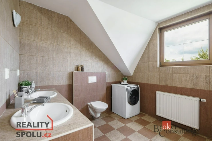 V druhém nadzemním podlaží je situováno 5 pokojů různých velikostí, dva z nich nabízí i východ na balkón. Velká koupelna je vybavena dvěmi umyvadly, toaletou, vanou, a sprchovým koutem.