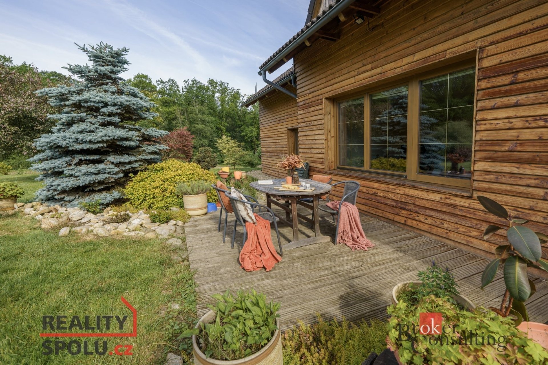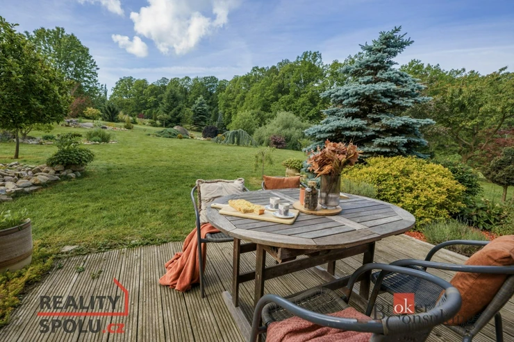 Celý pozemek má rozměr 2679 m2 a zahrada je velmi dobře udržovaná. Zároveň velikost zahrady nabízí možnost širokého využití - relaxaci, zahradničení, i dovádění pro děti. Nachází se zde jak krytá terasa, na kterou se vchází hned z kuchyně, a zároveň se zde nalézá i otevřené posezení na slunečné straně za domem s výhledem do zahrady.
