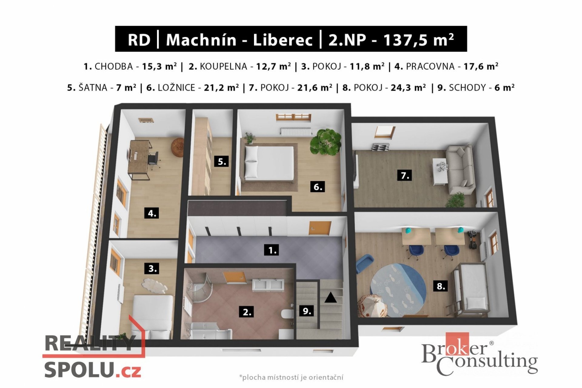 Jedná se o dvoupodlažní dům s velkorysou dispozicí 8+kk a užitnou plochu 257 m2. Nachází se v klidné lokalitě u lesa, a při tom s rychlou dostupností do centra Liberce.