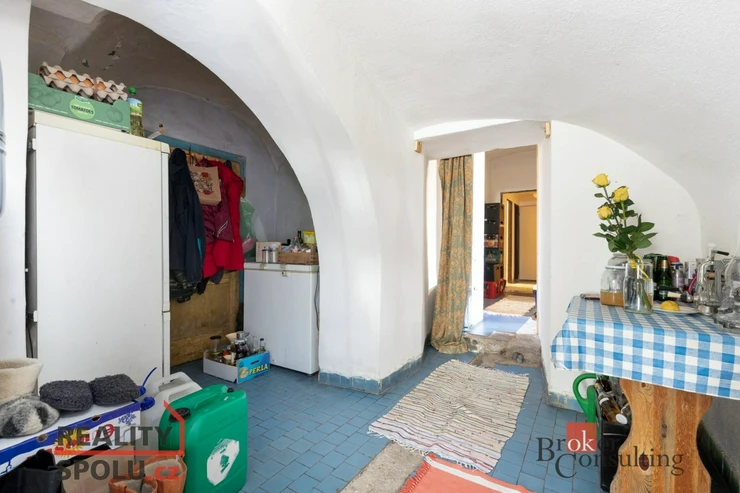 Podsklepený rodinný dům disponuje obývacím pokojem s krbem, dvěma ložnicemi, koupelnou, záchodem a kuchyní. Zároveň zde najdete dostatek úložného prostoru. V některých pokojích jsou klenuté stropy, které dodávají interiéru jedinečný charakter.