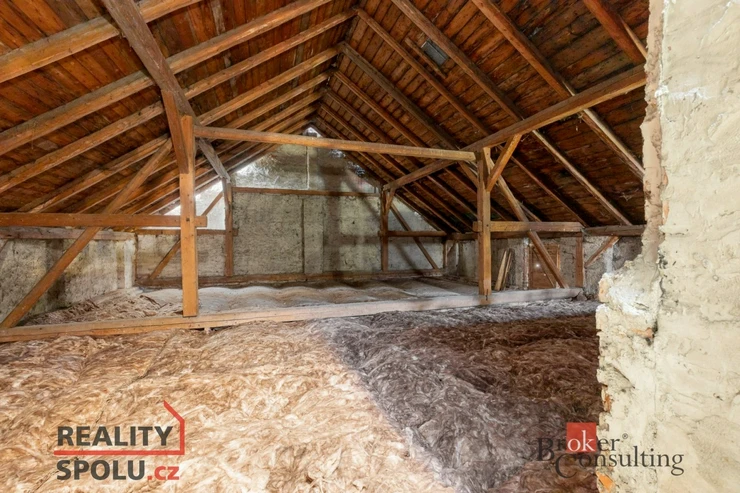 Díky dobrému stavu střechy a suché půdě je možno z podkroví udělat další pokoj.
