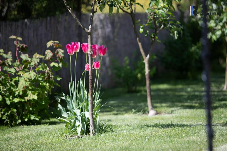 + Garden with fruit trees and shrubs, apple tree, gooseberry, currant, hazel