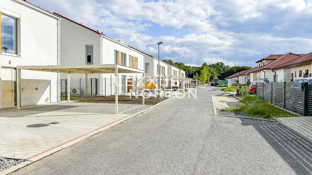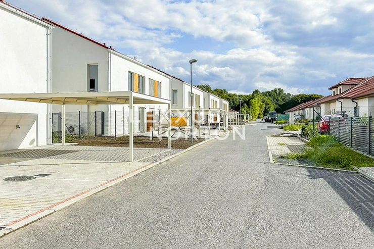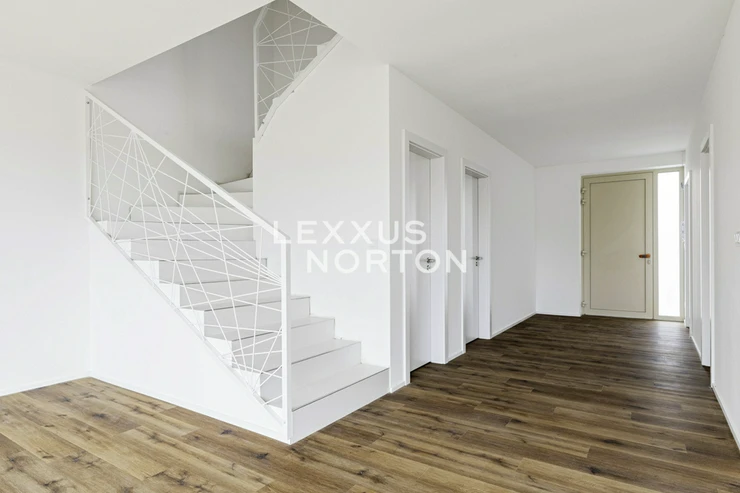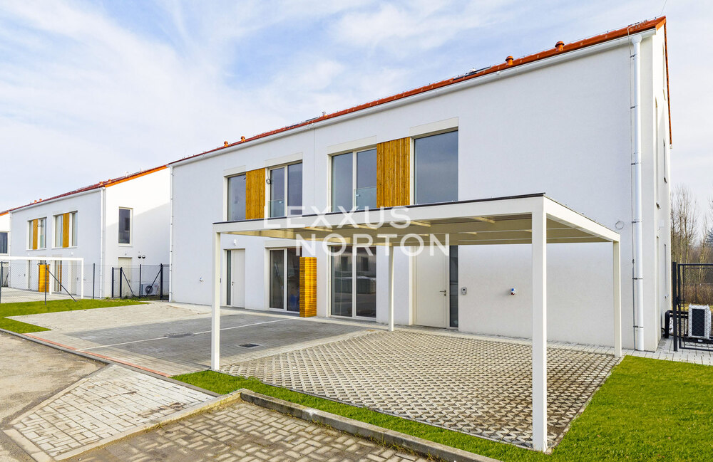 Modern 4-bedroom family house with an area of 194 sqm, which combines comfort, technology, tranquility of the countryside and is inspired by Belgian architecture. The house has a garden (351 sqm), a wooden terrace (9.04 sqm) and two covered outdoor parking spaces.Looking for the perfect home? This newly built 4-bedroom semi-detached house with a generous floor area of 204.58 sqm and a garden (351 sqm) is a place where modern technology, energy efficiency and a rural atmosphere come together, plus excellent access to the centre of Prague.On the ground floor you will be welcomed by a spacious living room with kitchenette of 45.59 sqm, which has natural light thanks to large-format aluminium windows with triple glazing. Furthermore, a room that can serve as a study or guest room, a modern bathroom, a practical pantry and a utility room with preparation for a washing machine and dryer.The first floor offers a master bedroom with dressing room and bathroom, two further bedrooms and a shared bathroom. There is also an attic which can be adapted as required (e.g. games room, office, studio or additional rooms).You can look forward to quality vinyl flooring, unique tiles and black matt sanitary ware from the renowned Hansgröhe brand. Every detail has been carefully selected to meet the high standards of aesthetics and functionality. The house is equipped with cutting-edge technologies such as a heat pump, underfloor heating, thermal and acoustic insulation, preparation for outdoor blinds and photovoltaic panels, and a heat recovery system to ensure extremely low running costs and a healthy indoor environment. Panoramic aluminium windows HS Portal not only illuminate the interior, but also offer unique views of the surrounding landscape. It also includes a spacious terrace, a garden for relaxation and 2 parking spaces with its own charging station for electric vehicles (400V).Optional building modifications at extra cost*- Turnkey gallery completion: SDK walls, vinyl installation, skirting board installation, painting, radiator installation- Extra cooling for individual rooms- Wood panelling on staircase (solid oak, see photos)- Spiral staircase to the gallery* We will be happy to provide you with a specific quotation for building alterations on request.The GreenTown Velvary residential project is located on the outskirts of Velvar, which lies between Kralupy nad Vltavou and Slany. The location offers rich civic amenities, including schools, kindergartens, shops and services, as well as the tranquility of a rural environment surrounded by meadows and the nearby Vltava River.Prague can be reached by car in just 35 minutes and Václav Havel Airport in half an hour. Excellent connections are also provided by regular bus and train lines, which will take you to the centre of Prague within an hour.