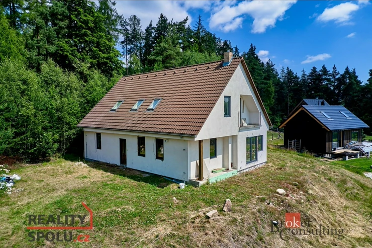 Dům s duší na kraji lesa – před dokončením 6+1, 202 m², pozemek přilehlý k domu 1 488 m², Smolné Pece.