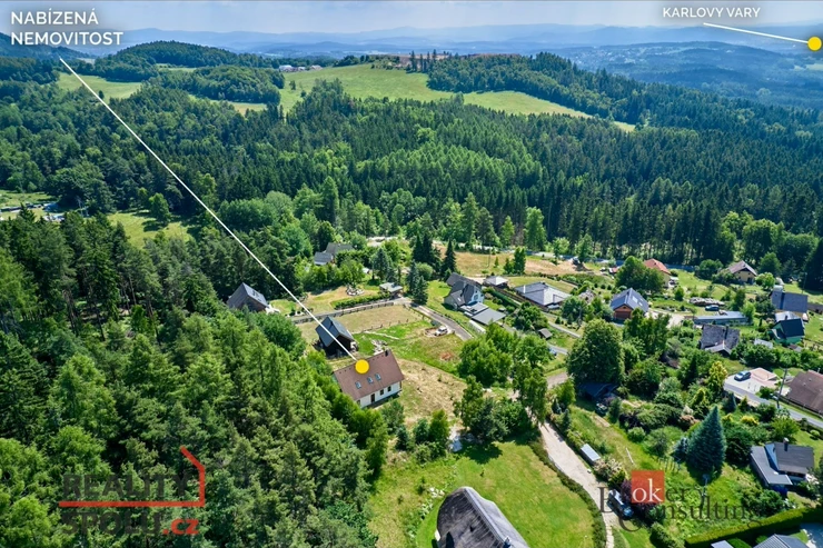 Tento prostorný dům s dispozicí 6+1 a podlahovou plochou 202 m² stojí na velkorysém, svažitém pozemku o rozloze 1 488 m². Z jedné strany jej chrání tichý les, který zve k procházkám a relaxaci, z druhé strany se otevírá dechberoucí výhled do údolí a až na samotné Karlovy Vary. Každý den zde můžete pozorovat proměny přírody a užívat si klidu, který nabízí jen opravdový domov na venkově.