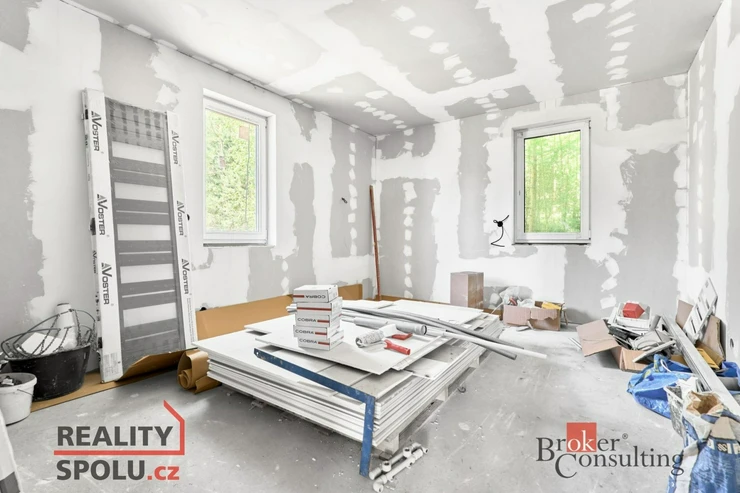 Dům je před dokončením – čeká na nového majitele, který mu vtiskne vlastní styl a život. Uvnitř zbývá dokončit některé podlahy, částečně sádrokartonové obložení a zařizovací předměty, zvenčí pak balkony a fasádu. Již zakoupený a nenainstalovaný materiál (vnitřní dveře, dlažbu do spodních místností, elektricky ovládané žaluzie atd.) současný majitel předá novému majiteli společně s domem.