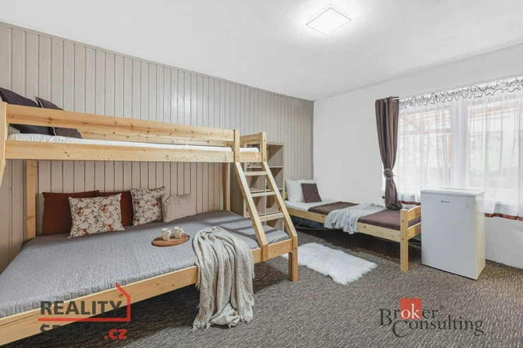 Hledáte výjimečnou příležitost pro další využití - od rozšíření kapacity pro vlastní bydlení či podnikání pod jednou střechou v krásné přírodě Jizerských hor? Nabízíme k prodeji penzion, který se nachází poblíž Albrechtic v Jizerských horách, v těsné blízkosti Tanvaldského Špičáku. Tento stylový a plně vybavený penzion s kapacitou 22 lůžek je ideální pro milovníky přírody a aktivního odpočinku. Součástí penzionu je i soukromý apartmán pro majitele se 4 lůžky a samostatnou kuchyní a terasou.