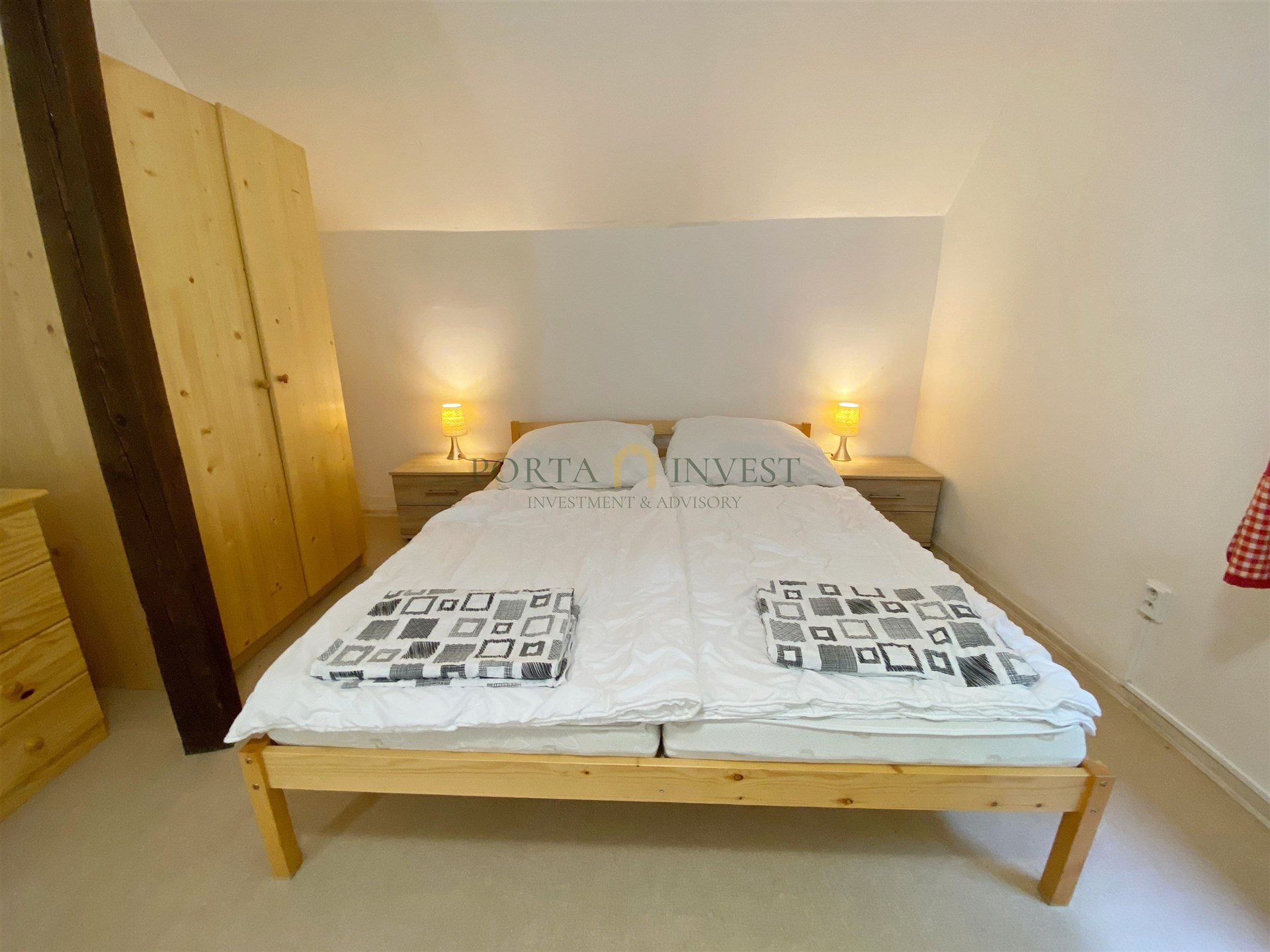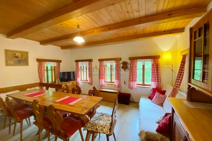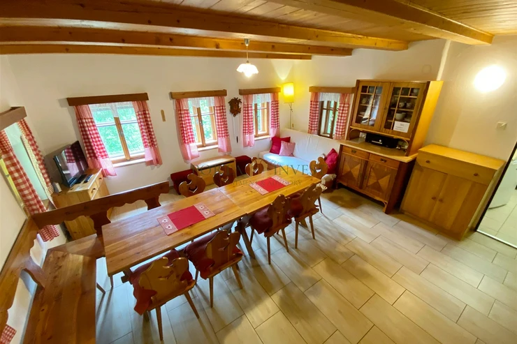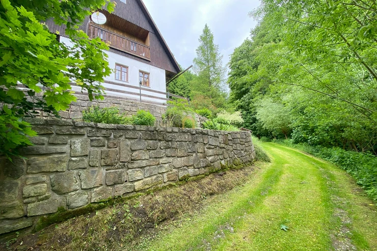 Nabízíme k prodeji malebnou stylovou chalupu (98 m2 podlahové plochy) s pozemkem (558 m2) v České Metuji, části obce Vlásenka, okr. Náchod, v CHKO Broumovsko. Nemovitost se nachází uprostřed zeleně, na klidném místě (polosamota) s příjemnou jihovýchodní orientací. Dispozici přízemí tvoří vstupní chodba, centrální stylová obytná místnost s malou, ale vybavenou kuchyňkou, samostatná toaleta a koupelna se sprchovým koutem. V obytném podkroví se nachází další dvě místnosti užívané jako ložnice, s lůžky až pro osm osob. Větší z ložnic má navíc k dispozici příjemnou dřevěnou lodžii.