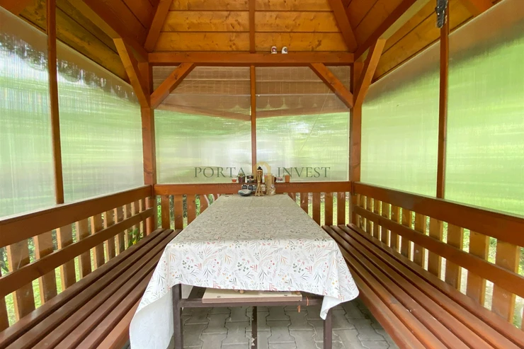 Vytápění objektu zajišťují kamna na dřevo, v patře elektrické přímotopy. Podlahy pokrývá dlažba a PVC, ve vstupní chodbě beton. Kanalizace je řešena jímkou, ohřev vody (veřejný vodovod) zajišťuje bojler. Nemovitost má internetové připojení. Na udržovaném neoploceném pozemku se dále nachází zahradní altán, ohniště, kůlna na nářadí a dřevo a parkovací stání pod krytou pergolou.
