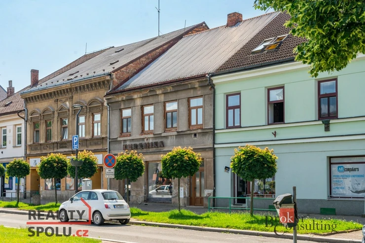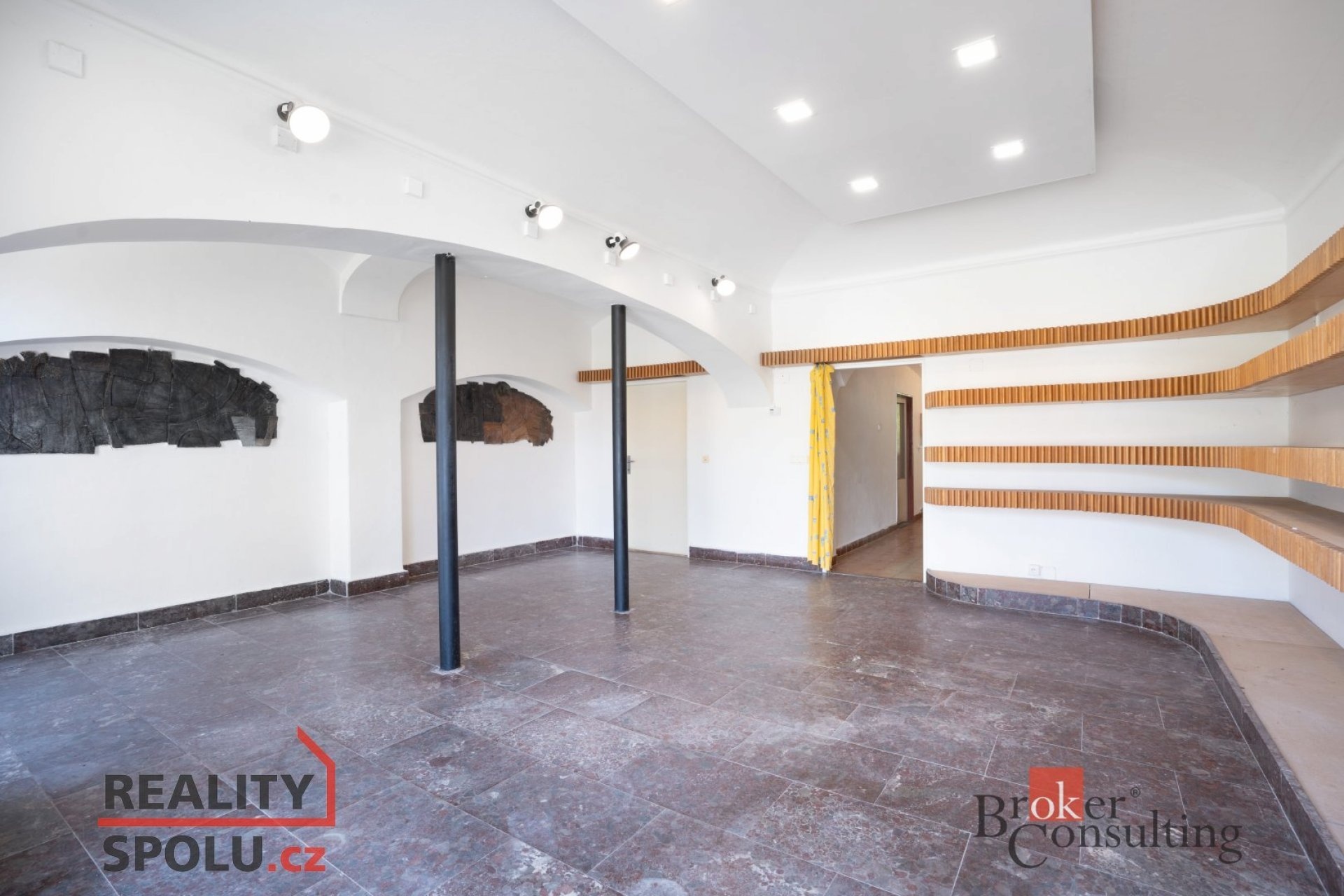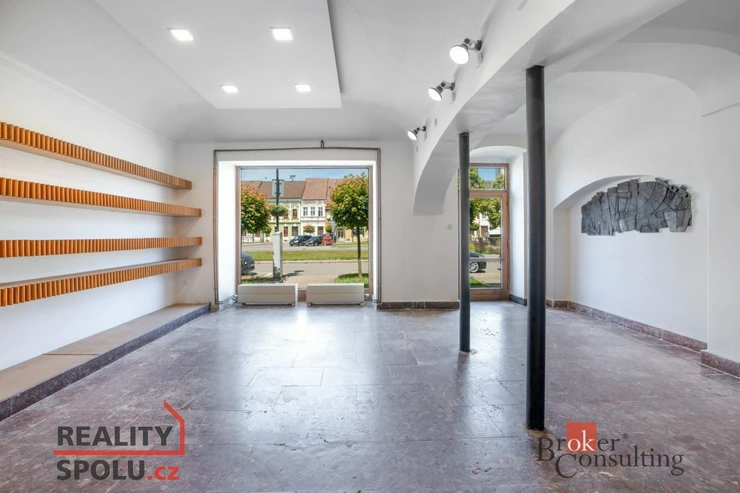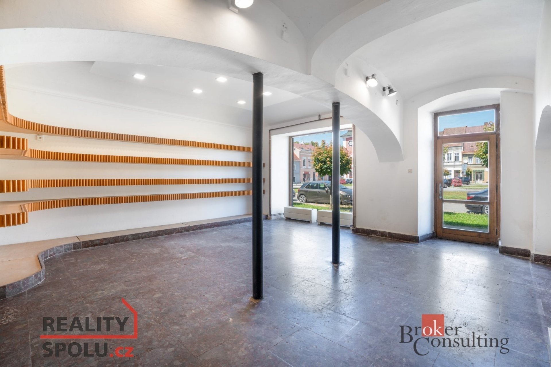 Komerční prostor v přízemí má plochu 89 m² a dříve sloužil jako prodejna s výlohou a samostatným vstupem z náměstí. Dále je zde zázemí pro skladování, kancelář, toaleta a nákladová rampa s přístupem ze zahrady. Ideální pro obchod, služby nebo vlastní podnikání.