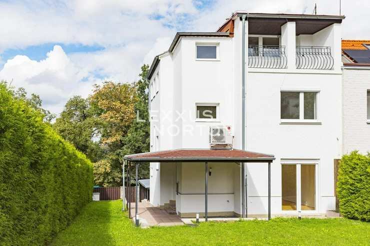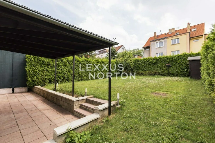 It is a half of a semi-detached house originally from the interwar years, which has recently been completely renovated. The house includes an internal layout of 4+1 with basement spread over three floors above ground and one underground floor. On the 1st floor is an entrance from the garden, behind which is a living room with a south-facing French window facing the garden and a separate kitchen and dining room. On 2nd floor we find two bedrooms, each connected with own bathroom. The entire second floor is designed as a parental. There is a large bedroom of 40m2, a bathroom and a dressing room. The bedroom on this floor is positioned in relation to the corridor so that it can possibly be divided into two separate rooms with their own stupas from the corridor, while maintaining sufficient size comfort of all rooms. The basement of the house is used as a technical and storage facility of the building and there is an internal garage. A second parking space is outside parking space, covered by a pergola and located next to the garage entrance. The garden is solved as a green lawn only, but is fully planted with hedging around its perimeter with a height to prevent views from neighbouring gardens. Utilities have been laid at the edge of the terrace adjacent to the house for the future installation of a swimming pool.Kitchen with complete set of appliances. Period parquet floors. Plenty of built-in wardrobes in hallways, bedrooms, cloakroom and basement. Gas boiler.The house is built in a quiet one-way street Huberova, below the hill Bila Hora. This place is interesting by a few factors, namely the quiet location with minimal development around, consisting of only a few family houses, the abundance of greenery around it, mainly the neighbouring Hvezda park, and the nice unobstructed views of the wider surroundings through the park around the summer palace or on the other side to the undeveloped historical monument on Bila Hora. The result is an almost rural character of the micro-locality, still in Prague 6 and near all city infrastructure.