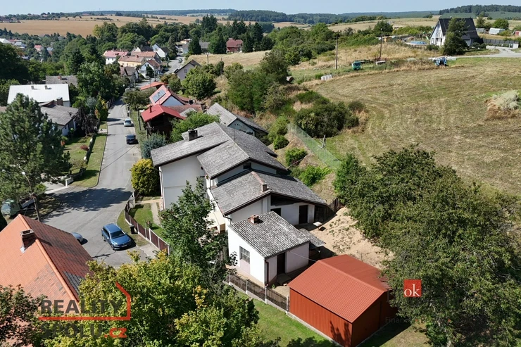 Dům o zastavěné ploše 170 m² a 2 bytovými jednotkami, ke kterému také náleží zahrada o celkové výměře 742 m². Vytápění je zde řešeno kondenzačním kotlem na uhlí, s rozvody po celém domě, dílně i přilehlých místnostech. Ohřev vody zajišťuje bojler, kanalizace je zde obecní, stejně tak připojení na vodu. Plyn na hranici pozemku. V přízemí domu najdeme prostornou chodbu se vstupem do sklepa, samostatné WC, koupelnu, kuchyni s jídelnou, obývací pokoj, ložnici a dětský pokoj. Ve druhém patře pak koupelnu, samostatné WC, obývací pokoj s ložnicí, pracovnou se vstupem na terasu, kuchyni s jídelnou a dětský pokoj. Celé podkroví o výměře 40 m² je aktuálně nevyužité a slouží hlavně pro uskladnění sezonních věcí. Před domem pohodlně zaparkujete dvě auta, další pak pod markýzou již na pozemku, nebo v kryté garáži, kudy se dá dostat také do místnosti v přízemí, která může sloužit jako dílna nebo sklad. Po schodišti se dostanete do další části domu, kde naleznete další 3 místnosti, z čehož jedna aktuálně slouží jako dílna. Na pozemku se pak nachází ještě menší stavba, kde jsou chlévy, slepičárna a sklep na uskladnění potravin. Zahrada jako taková je udržovaná, oplocená a nabízí dostatek prostoru pro Vaši realizaci. Naleznete zde terasu připojenou k hlavní budově se vstupem z domu, skleník, vyvýšené záhony a upravené okrasné stromy. V obci najdete prakticky veškerou občanskou vybavenost, jako je autobusová zastávka, večerky, škola, školka, zubař, lékař a restauraci s hospodou. Spojení s Plzní zajištuje pravidelná autobusová doprava.