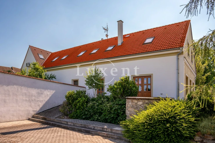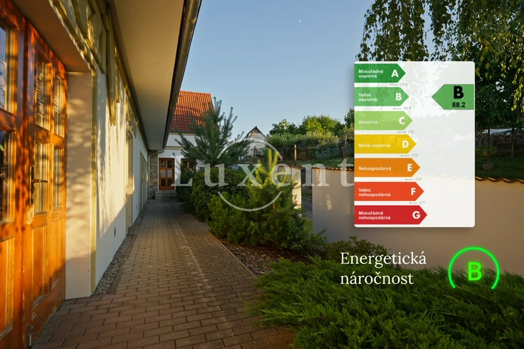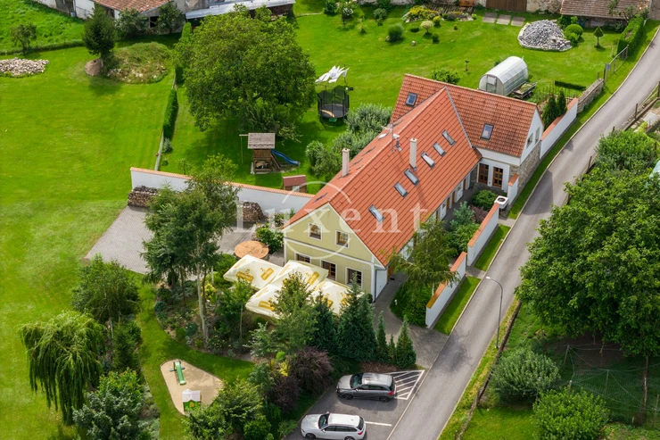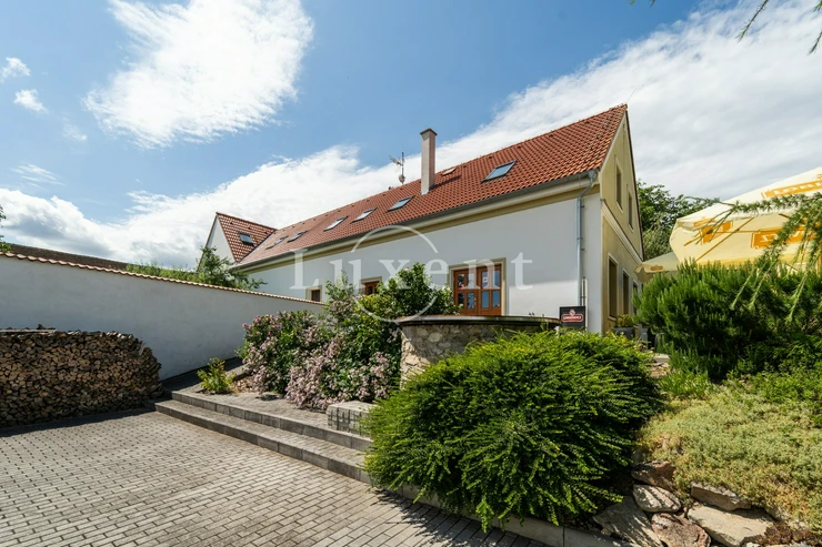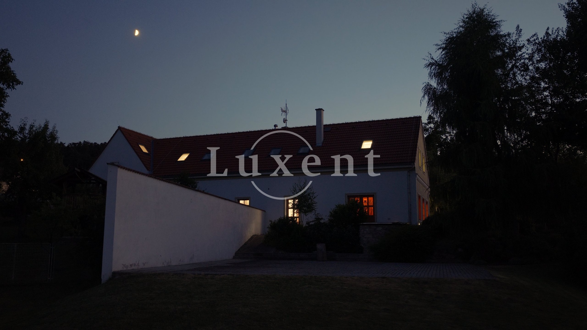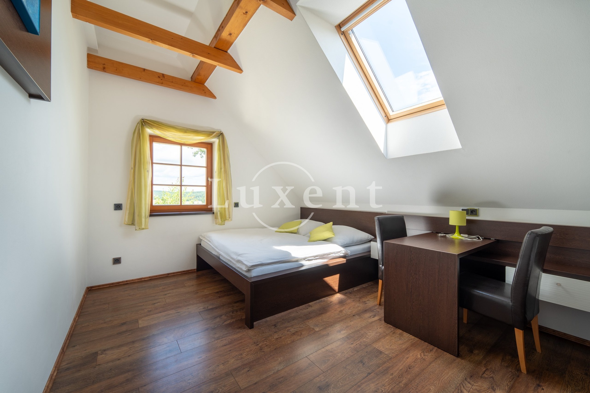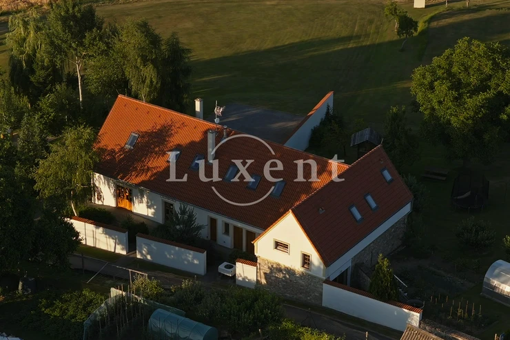 We offer for sale a stylish family house in Kvítkovice – in the charming landscape of forests and ponds of the Blanský Forest, just 10 km from České Budějovice and 18 km from the motorway to Prague. The total usable area of the house is 580 m². The large flat plot of land covers 2,913 m² and offers breathtaking views of the green countryside and ponds from the house. The layout of the house is 6+kk plus 2+kk. The advantages of the house are its high-quality construction, modern technology, and low operating costs. Energy efficiency category B – very economical. The house can be used comfortably for permanent living or recreation. The offer includes a building permit for another building on the plot.