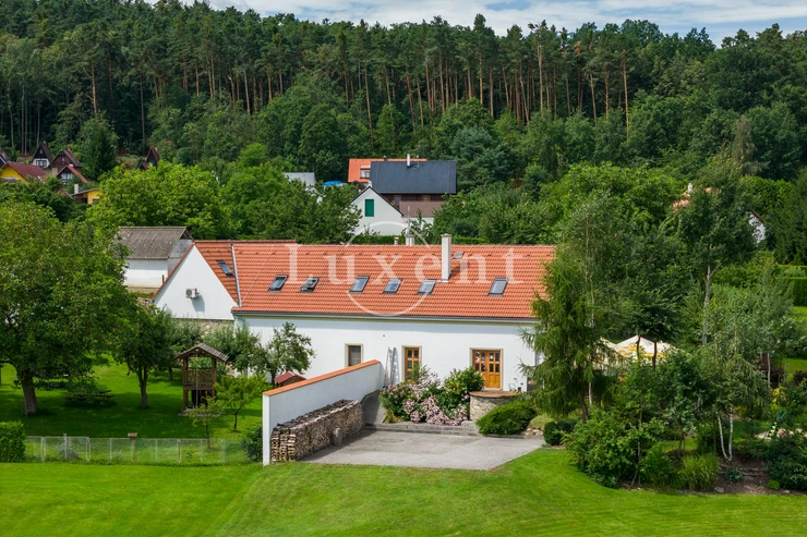 The advantages of the location include clean nature with forests and ponds, complete peace and quiet, and countless opportunities for active recreation, while at the same time being within minutes of Budějovice and the D5 motorway. There are many hiking and cycling trails in the area. Golf Hluboká is 14 km away, Holašovice is 6 km away, and Český Krumlov, a UNESCO World Heritage Site with a rich cultural program throughout the year, is 30 km away.