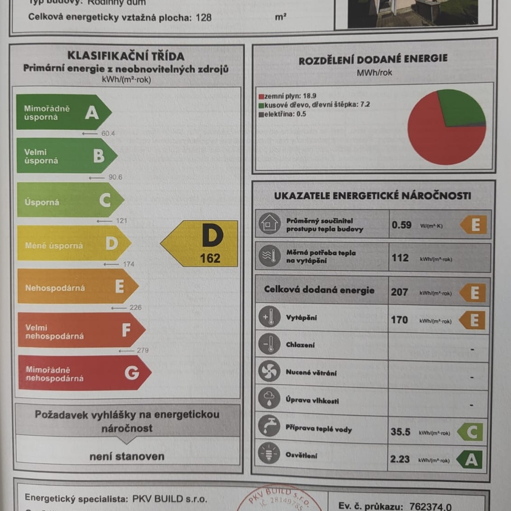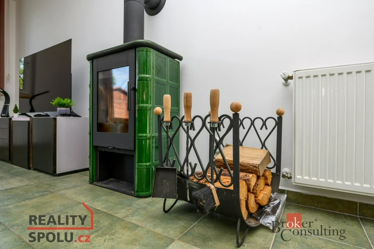 Dispozice a vybavení: obývací pokoj s kuchyňským koutem, tři samostatné pokoje, koupelna, samostatné WC. Vytápění a ohřev teplé vody zajišťuje plynový kotel s každoroční revizí, jako alternativní vytápění jsou v obývacím pokoji krbová kamna. Voda je přivedena ze společného vrtu s dostatečnou kapacitou pro rezidenční zástavbu. Odpady jsou řešeny ČOV.