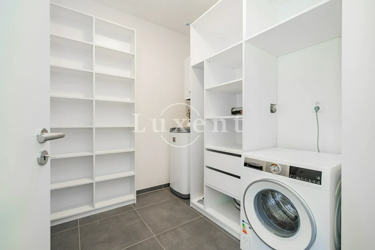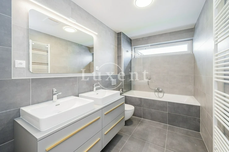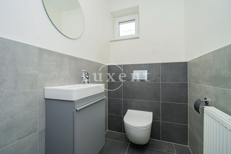 We offer for sale a newly built terraced house with 3 rooms + kitchenette, a front garden and an atrium in a beautiful location in Prague 6 - Lysolaje. The property is fully furnished and ready to move in. The house also includes a front garden, an atrium, two garage parking spaces and a cellar (right of exclusive and permanent use of common areas).