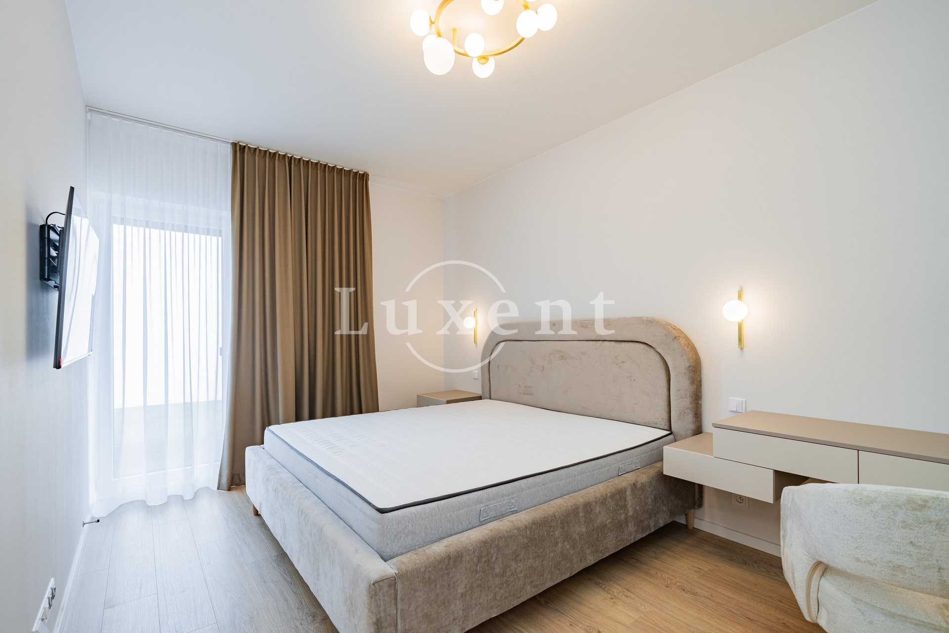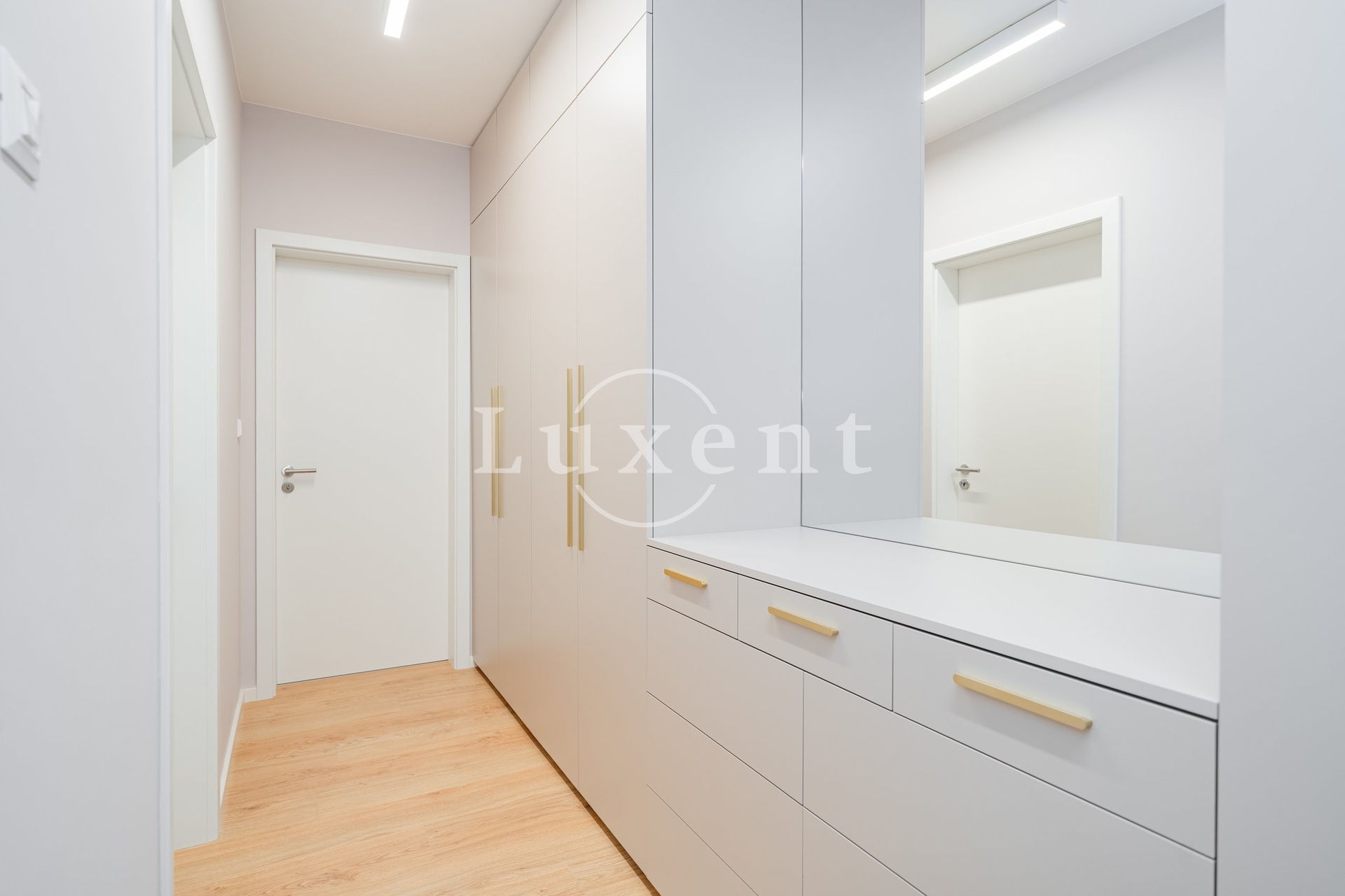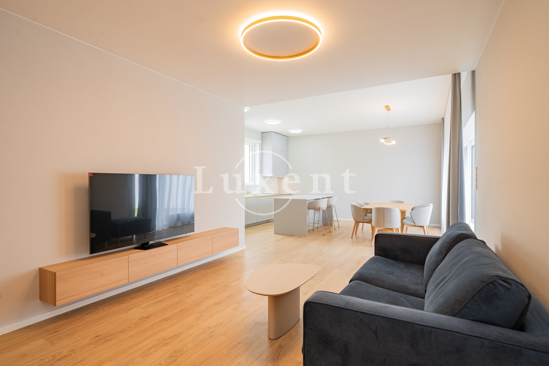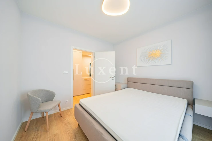 The 34 m² living room is tastefully furnished with designer furniture and includes a fully equipped kitchen with Bosch appliances and a dining area. The dining room and bedrooms (11.3 m² and 15.9 m²) have direct access to a private atrium (43.1 m²). The comfortable bathroom (6.2 m²) is equipped with two sinks, a bathtub, a shower and a toilet.