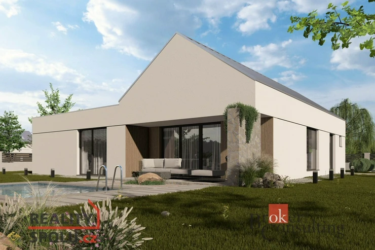 S potěšením Vám představujeme jedinečnou příležitost k pořízení moderní dřevostavby (možnost i zděné verze) ve fázi projektu s výstavbou na klíč od renomované společnosti ILO DOMY. Tento jednopodlažní dům s kombinací rovné a sedlové střechy s podlahovou plochou 110 m2 nabízí komfortní dispozici 5+KK, která je ideální pro rodinné bydlení.