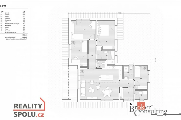 V ceně je obsažen pozemek a dům s finálními povrchy v interiéru. V ceně nejsou započítány terénní úpravy zahrady, napojení na sítě, čistička odpadních vod a kuchyňská linka se spotřebiči, což Vám umožňuje přizpůsobit si tyto prvky podle vlastních představ a potřeb.