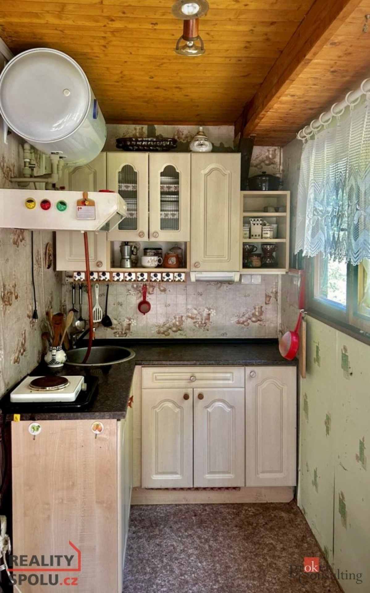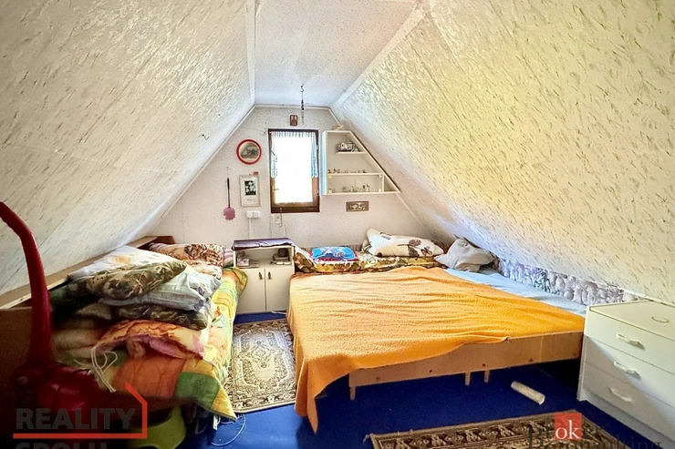 Na prodej je útulná dřevěná chata o ploše 35 m2 s obytným podkrovím, ideální pro víkendové úniky i delší pobyty. V chatě je zavedena elektřina a voda, a navíc je na pozemku k dispozici přípojka plynu. Stavba stojí na prostorném a oploceném pozemku o rozloze 1 126 m2, z něhož část je mírně svažitá a nabízí zajímavé možnosti terénních úprav.
