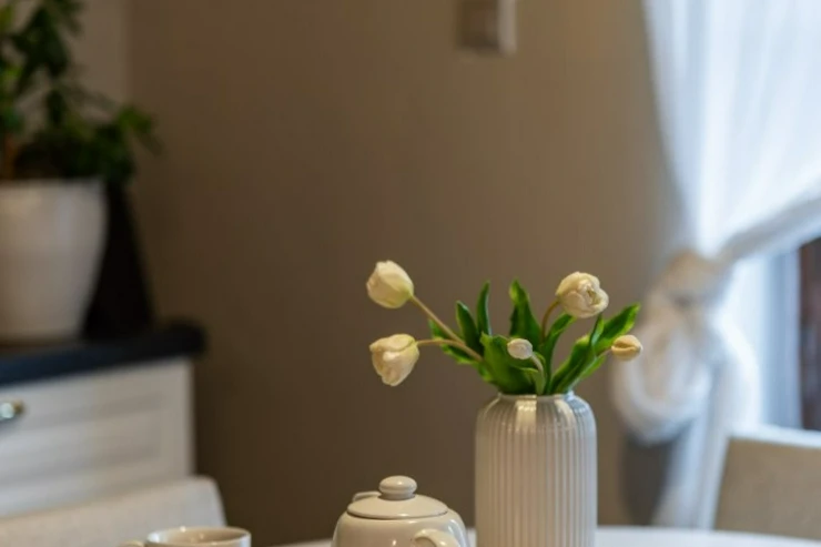 Vstoupíte do prostorného obývacího pokoje s vysokým stropem, který dodává prostoru vzdušnost a světlo, zatímco praskající oheň v krbu (nebo třeba vaše oblíbená deka a hrnek čaje) se postará o pocit tepla a bezpečí. Na něj navazuje příjemná kuchyň, kde voní ranní káva a kde se rodí společné chvíle u stolu.