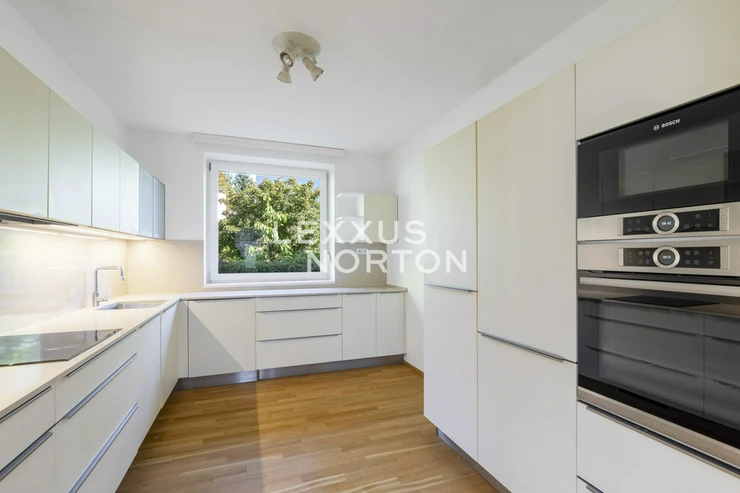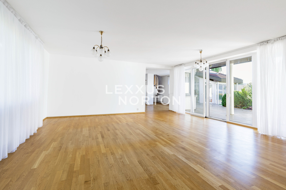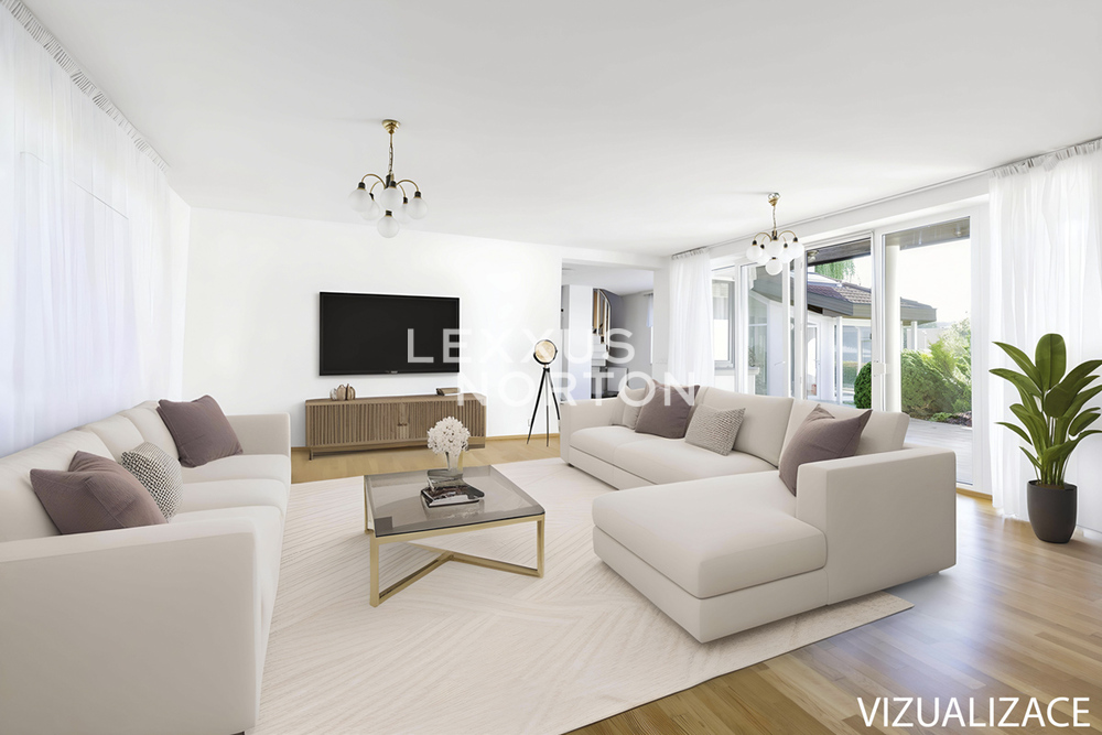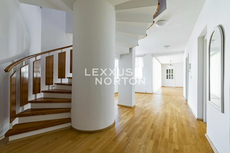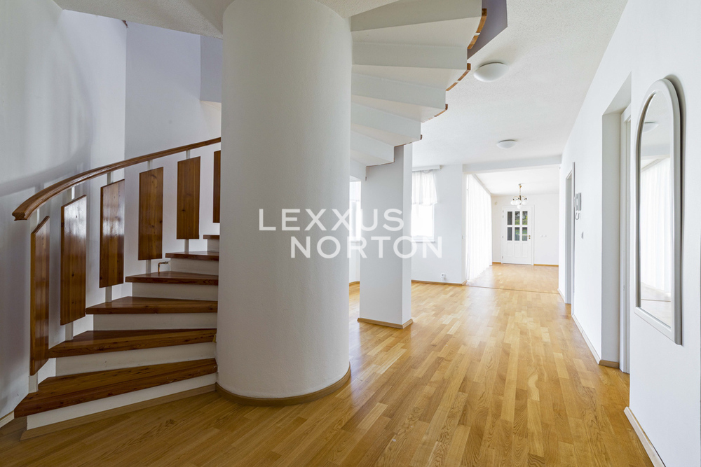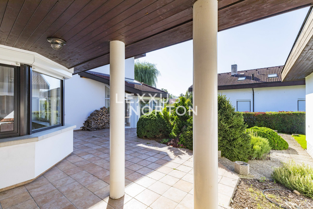The family house was completed in 1994 and offers very handy layout with five bedrooms. The house is in the centre of the village in a completely quiet street with consistent architecture. The shopping centre is just a few tens of meters from a way. The village has a wide range of services, primary school and kindergartens.On the ground floor of the house there is an entrance hall with a walk-in closet connected to the garage for two cars. The spacious living room of 38 sqm is connected by french doors to the terrace and the connected garden. The living room is nicely bright, has a rectangular shape and the great visual contact with the garden. There is situated a study next to the living room. The dining space is solve as an open plan space in another part next to the living room. The kitchen is separate with a pantry. The house has an indoor swimming pool with a winter garden, leading to the terrace and continues to the garden as well. In the rest part of the ground floor is a bedroom, a bathroom, a utility room and a technical room. Upstairs there are two bedrooms, a bathroom with entrance from the hallway and a master bedroom with own walk-in closet and en-suite bathroom.Facilities of the house include, modern kitchen, wooden floors, heated swimming pool, plastic windows, garden with automatic irrigation, gas boiler. The ground floor features a combination of underfloor heating and radiators. The property is in very good shape, continually maintained. There were completed some interior renovations since the original house completion.Kamenice village is located southeast from Prague and is easily connected by the D1 motorway, exit Velke Popovice. The surrounding location is popular for its nature, nearby by is Stirin Castle and you could easy reach directions of South Bohemia. A school and a kindergarten are within walking distance. Accessibility by car is about 30 minutes from Prague and from Budejovicka station you can use the public transport.