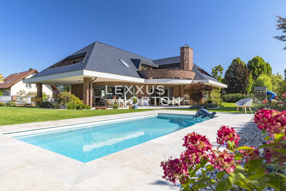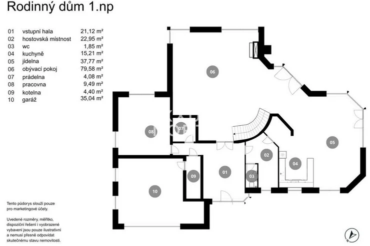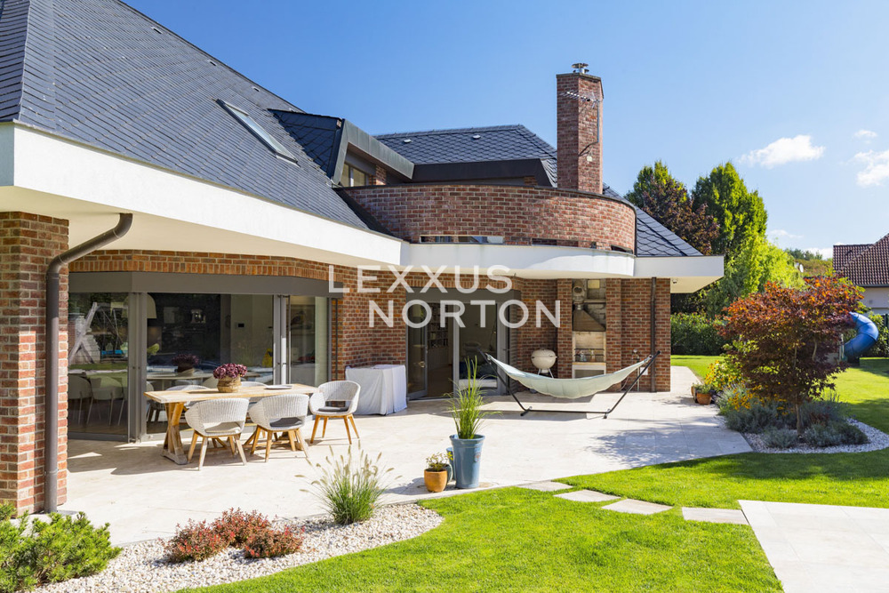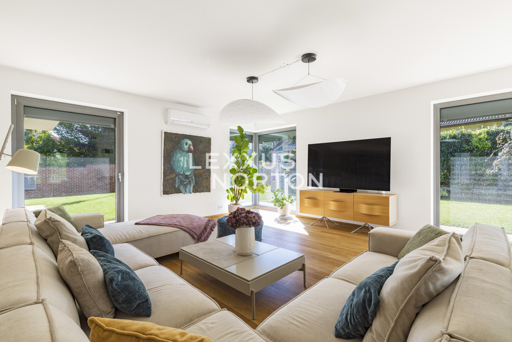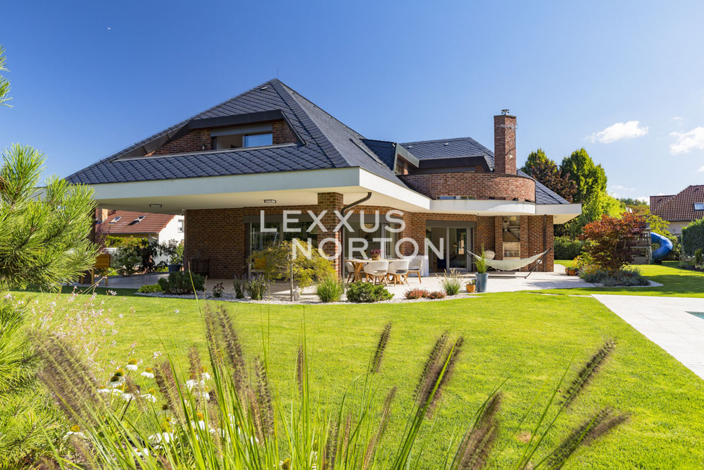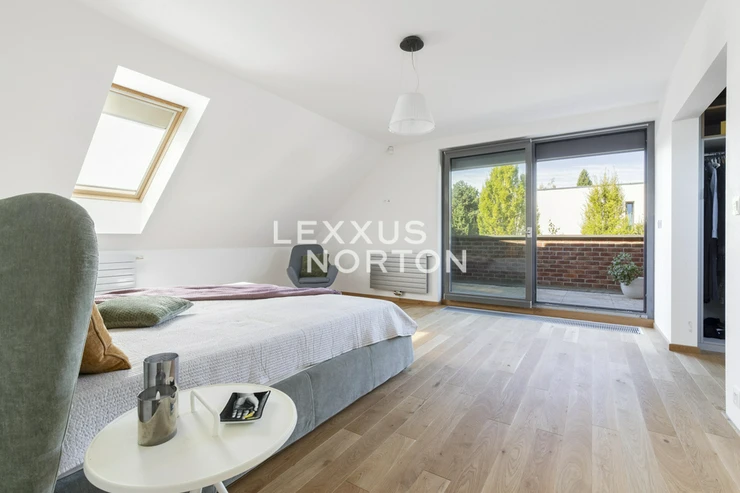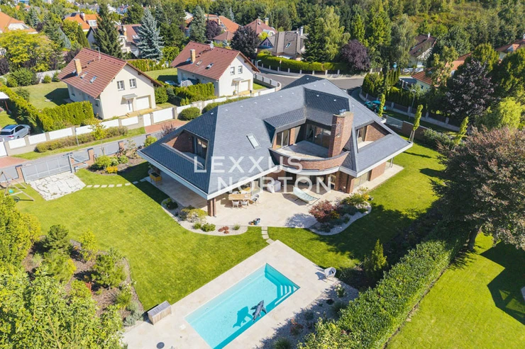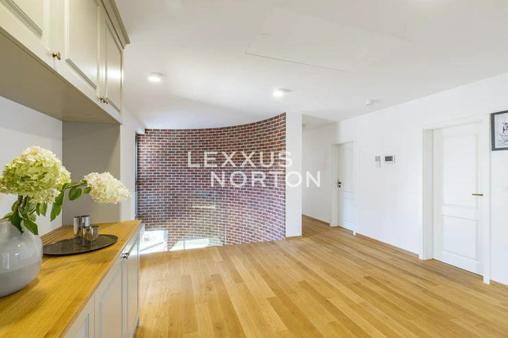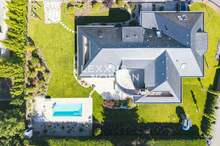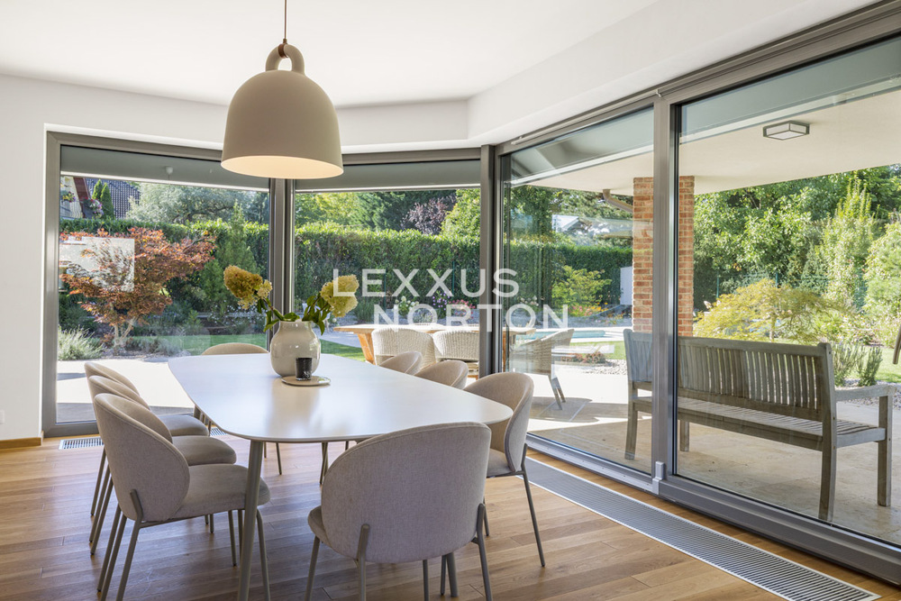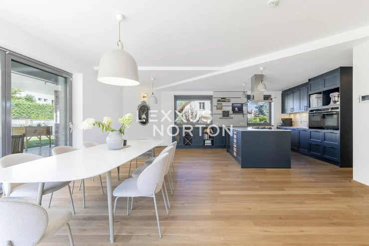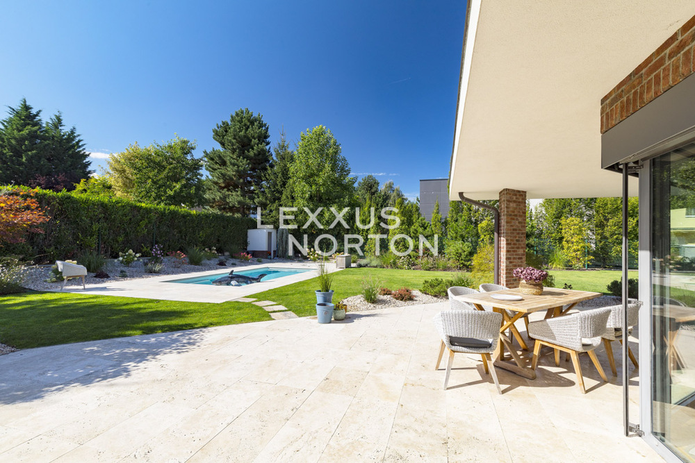 This timeless six-bedroom family house with two floors with a garden and outdoor pool is located in the sought-after residential area of Pruhonice.The house with a well-maintained garden and a total usable area of 360 sqm stands on a spacious plot of 1,430 sqm. On the ground floor, you will find an entrance hall, a guest room, a bathroom with a toilet, a separate toilet, a utility room, a laundry room, a pantry, and a garage. The living area consists of an open and airy living room with fireplace, which connects to the dining area and kitchen with a central island with a built-in hob. This area has direct access to a large outdoor terrace with an area of 100 sqm, which connects to a well-maintained garden with an outdoor saltwater swimming pool (3.4 x 7.2 x 1.4 m) with counter-current and heating. The garden is equipped with a Hydrawise irrigation system that draws water from a retention tank.A striking arched staircase made of solid wood leads from the central part to the first floor. Upstairs there are four bedrooms, two bathrooms with toilets, a study, a dressing room, a utility room, and three terraces with a total area of 45 sqm.The house was purchased as a shell and all technical systems were newly built in 2023. The interior design emphasizes design, quality, and functionality. The property is equipped with aluminum windows with double glazing and external blinds, custom-made security doors, and three-layer oiled oak floors complemented by underfloor heating. LG units provide air conditioning in every living room. The kitchen from renowned German manufacturer Schüller is fitted with a Technistone stone worktop and equipped with Siemens appliances from the Studioline series. The bathrooms feature high-quality Laufen sanitary ware, complemented by elegant Hansgrohe faucets and stylish Zehnder radiators, with Italian-made wall and floor tiles. All electrical appliances and controls are connected to a smart home system and can be conveniently controlled via a mobile app. Security is provided by the Jablotron system, which is complemented by Hikvision camera surveillance and a video intercom for convenient entry control.Pruhonice is one of the most prestigious residential areas in the Prague vicinity. The area combines excellent accessibility to the capital city, civic amenities, and a peaceful environment with plenty of greenery. The dominant feature of the village is the extensive Pruhonice Park with its castle, whose surroundings offer numerous bike paths and opportunities for leisure activities. The amenities in the village are of a high standard – there are kindergartens and schools, restaurants and sports facilities. The Čestlice shopping zone is also in the immediate vicinity. The property is located in a quiet residential area with modern villas, ideal for family living with a high standard of privacy and security.