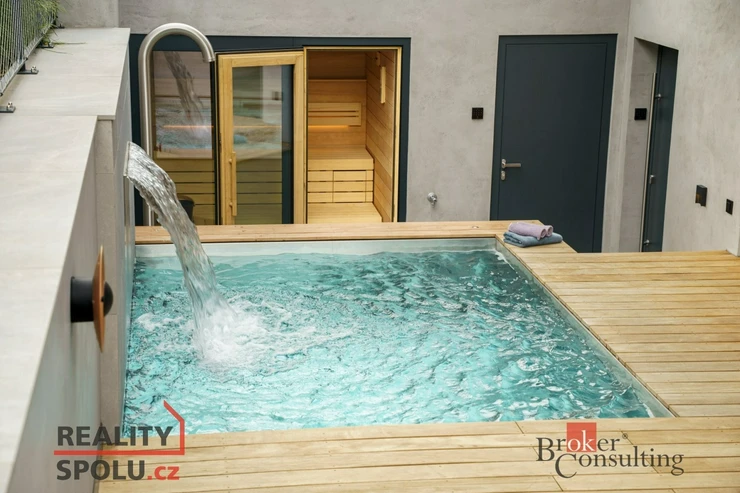 Terasa s vyhřívaným bazénem, privátní sauna a soukromá oáza klidu.