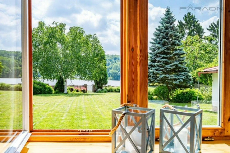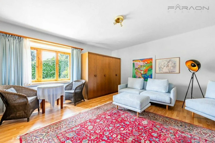 Sale of a two-storey family, brick house 5+1 with a separate garage on a unique sunny southwest-facing plot with direct access to the lake, with the genius loci of the place, where on the banks of the Jevany pond system, in an attractive location of a protected landscape area, important figures from the business, political and artistic worlds built their summer residences in the past. The picturesqueness and romantic nature of the surrounding landscape and especially the beautiful forests attract fans of quiet, residential living outside the city to Jevany.