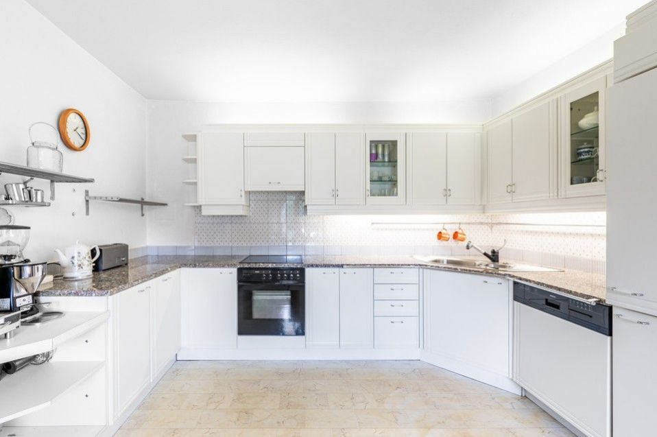 An exceptionally spacious and charming garden with mature trees provides privacy and creates an extraordinary feeling of undisturbed environment and intimacy. The land immediately borders a pond and has a private entrance to it.
