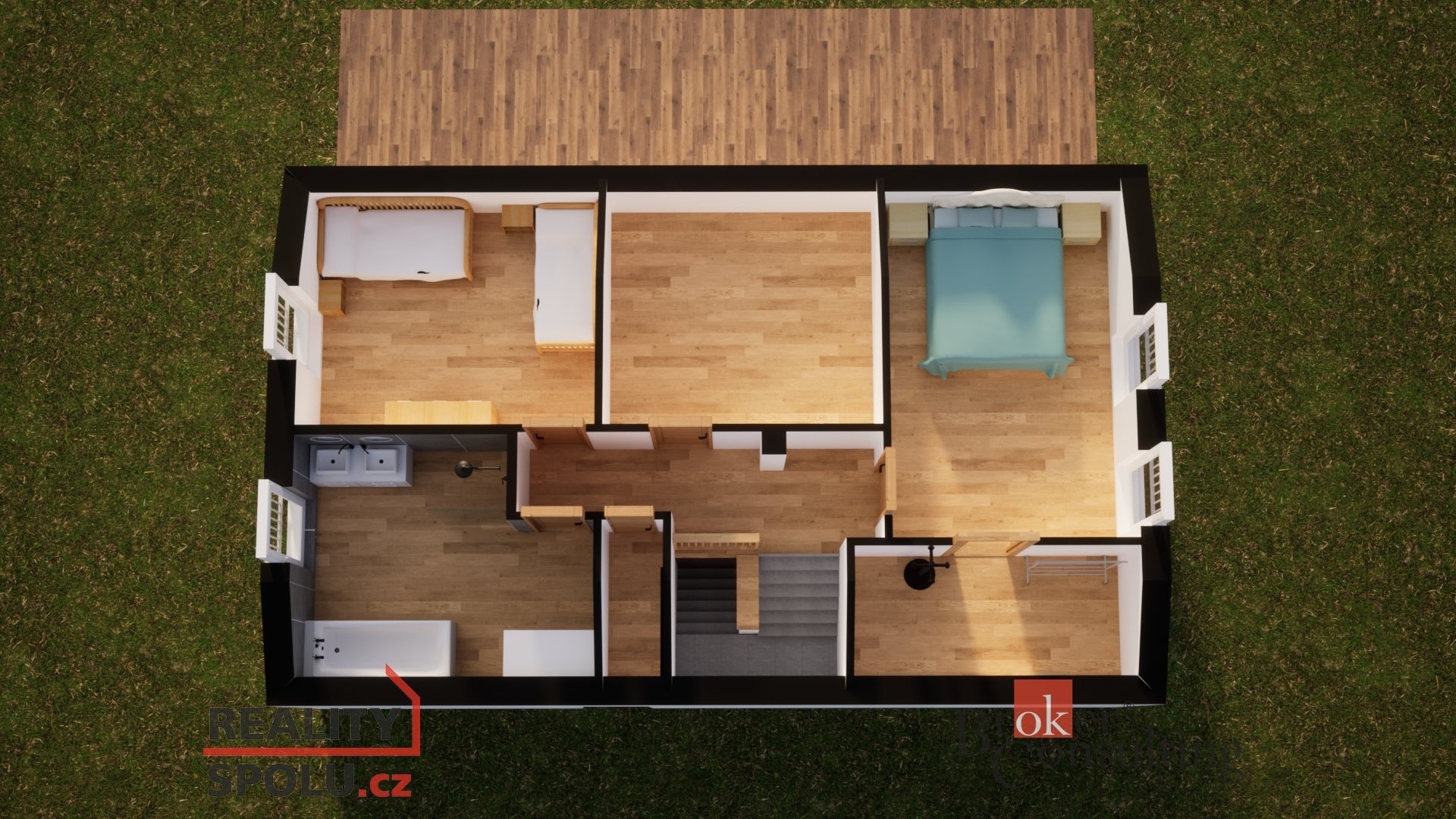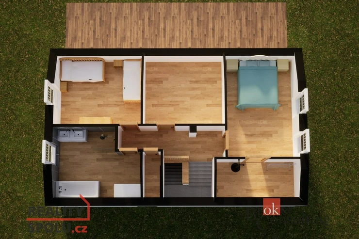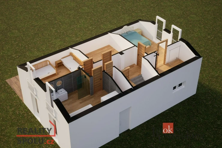 O patro výš naleznete útulnou ložnici s vlastní šatnou. Další dva pokoje, které můžete využít jakkoliv Vás napadne. Fantazii se meze nekladou.