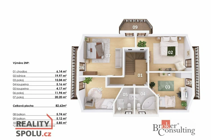 - 4 pokoje, 2x koupelna