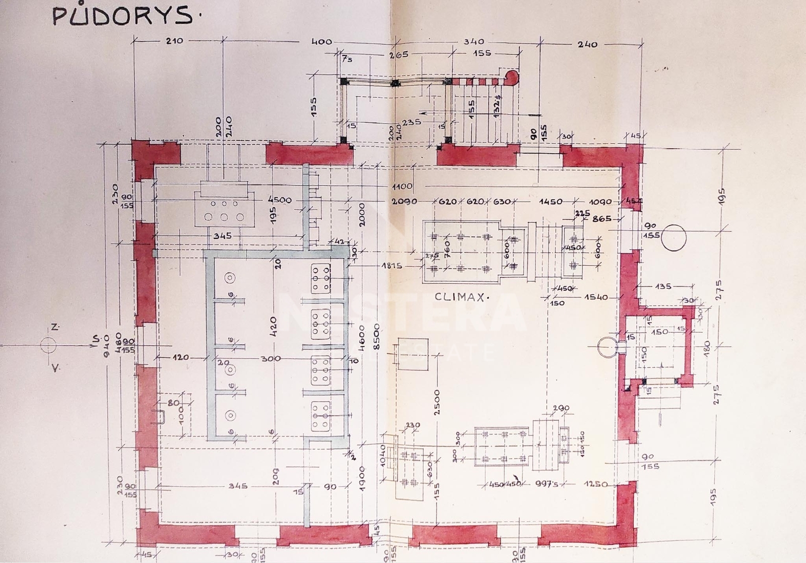 The photo documentation also includes the property’s original project plans for reference. The interior spaces, however, have been completely redesigned over time.