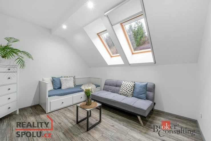 Dispozičně je nemovitost řešena jako 5+kk s obyvatelným půdním prostorem cca 40m2. Je ideálním řešením pro rodinu s dětmi. Nabízí velký prostor, dostatečný klid, soukromí, blízkost přírody a s výbornou dopravní dostupností do centra Liberce. Díky své dispozici a velikosti je možnost přestavby domu na třígenerační bydlení.