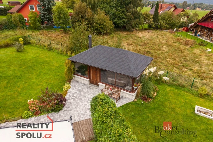 Součástí tohoto domu je prostorná dvougaráž s dílnou a půdním prostorem nad garáží. Velmi udržovaná zahrada s terasou nabízí krásný výhled do okolní krajiny a lesa. Na pozemku najdete vyhřívaný bazén s vířivkou, zděný zahradní domek určený pro posezení a grilování, skleník, ohniště, zimní zahradu a venkovní parkovací stání.