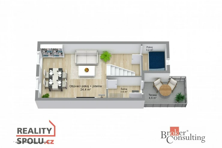 Tahle nemovitost je skutečný originál – krásný, atypický dům o třech podlažích s jedinečnou atmosférou, která si vás okamžitě získá. Interiér prošel citlivou rekonstrukcí: najdete zde stylový dřevěný interiér, krbová kamna, útulné zákoutí a ukrytý balkon do klidného vnitrobloku, ideální pro ranní kávu nebo večerní posezení.