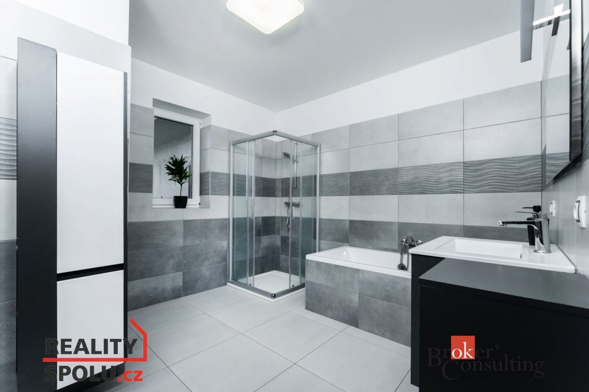 Noční část domu tvoří dvě dětské ložnice (jedna s vlastní šatnou a vstupem na druhou terasu), pracovna a hlavní ložnice se šatnou a zabudovaným bezpečnostním trezorem. K dispozici je moderní koupelna s toaletou, samostatné WC a technická místnost se vstupem do garáže.