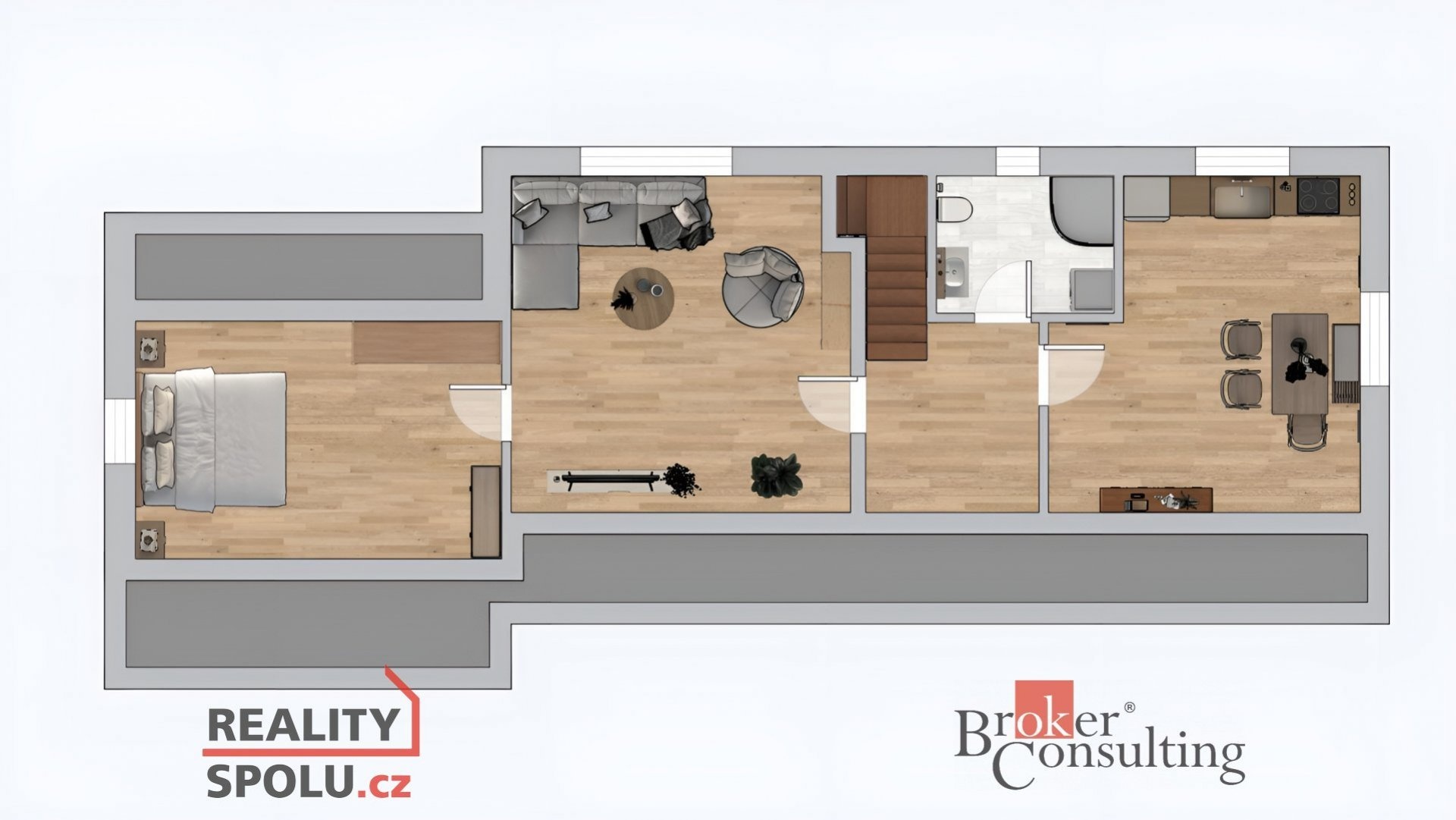 V přízemí domu dnes najdete provozovnu a obytnou část, což nabízí výhodu kombinace podnikání a bydlení pod jednou střechou – nebo možnost vytvořit plnohodnotné samostatné jednotky pro vícečlennou domácnost či pracovní kolektiv. Horní patro je připraveno k rekonstrukci, pro kterou je již zpracovaný projekt i vizualizace. Pokud máte chuť tvořit, rozvíjet a přizpůsobit prostor vlastním představám, právě zde najdete ideální základ.