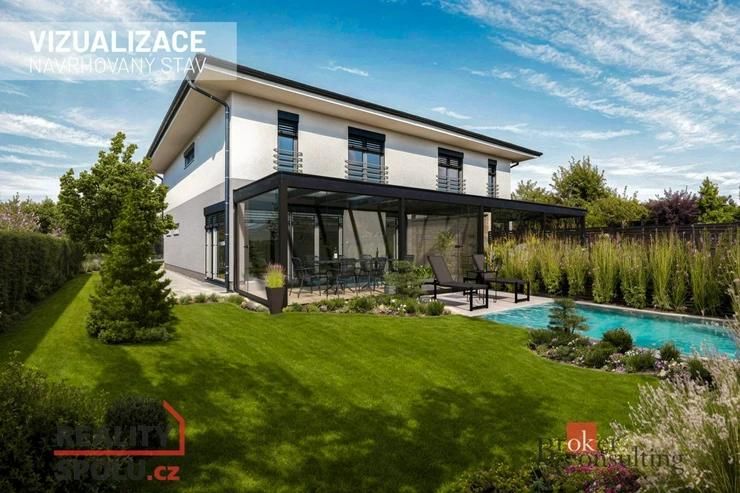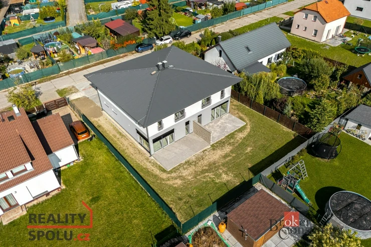 Within reach of Mladá Boleslav and Poděbrady, it offers a separate half of the house, each with a floor area of 160 m² including garages, garages with entrance directly into the house, always with a total area of 331 m².